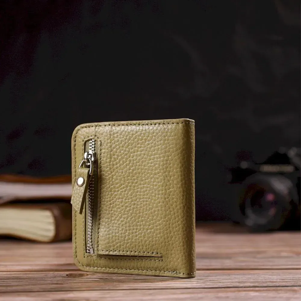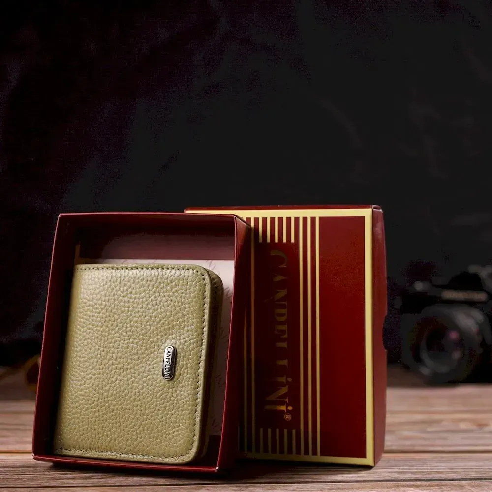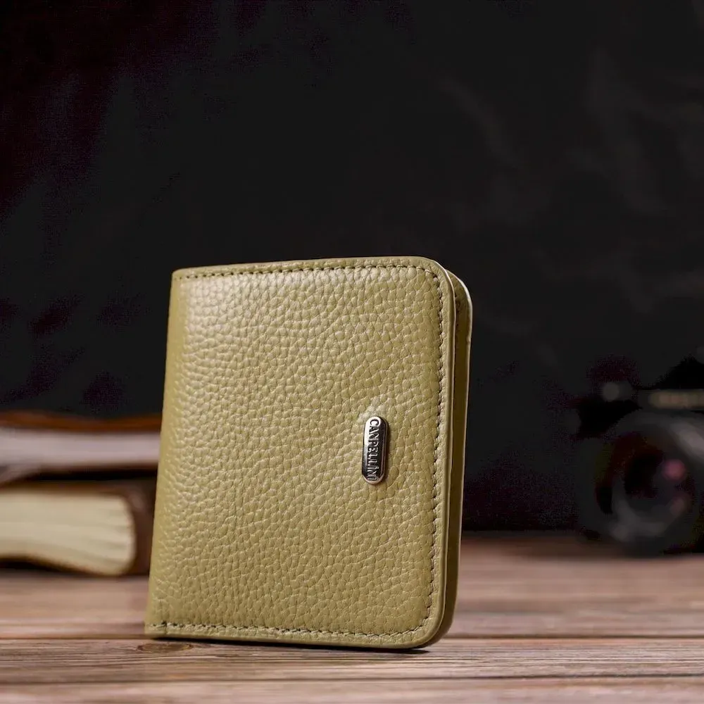Компактний жіночий гаманець із натуральної шкіри флотар CANPELLINI 21793 Оливковий