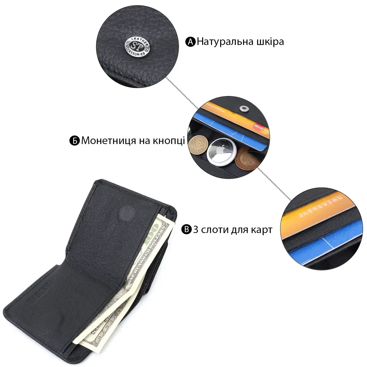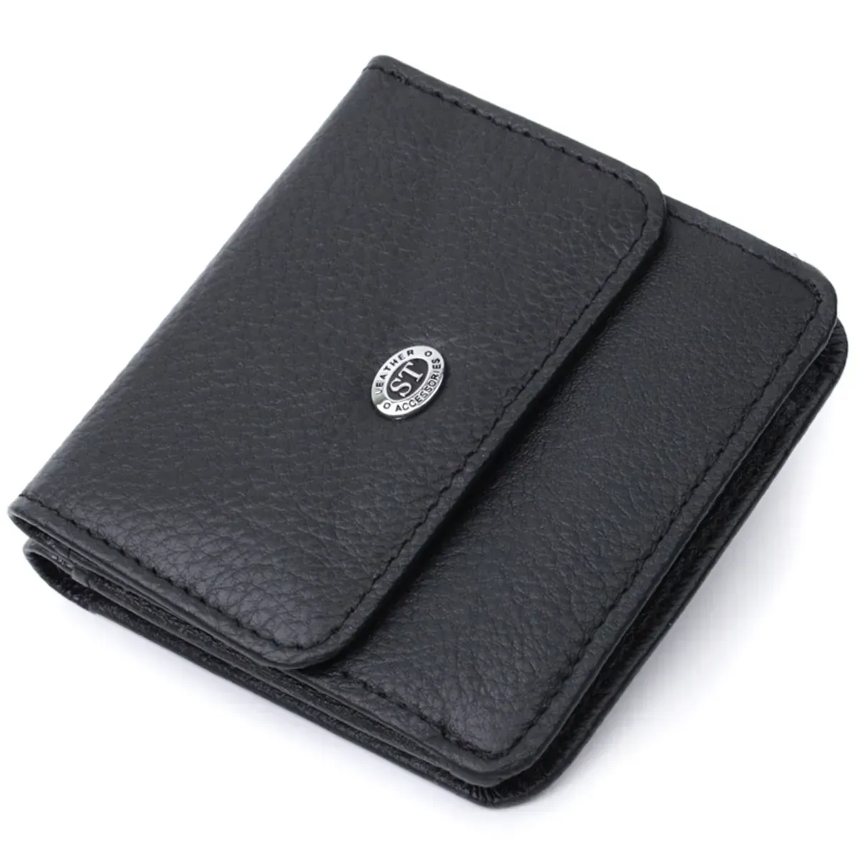 Компактний жіночий гаманець з кишенею для монет із натуральної шкіри ST Leather 22690 Чорний