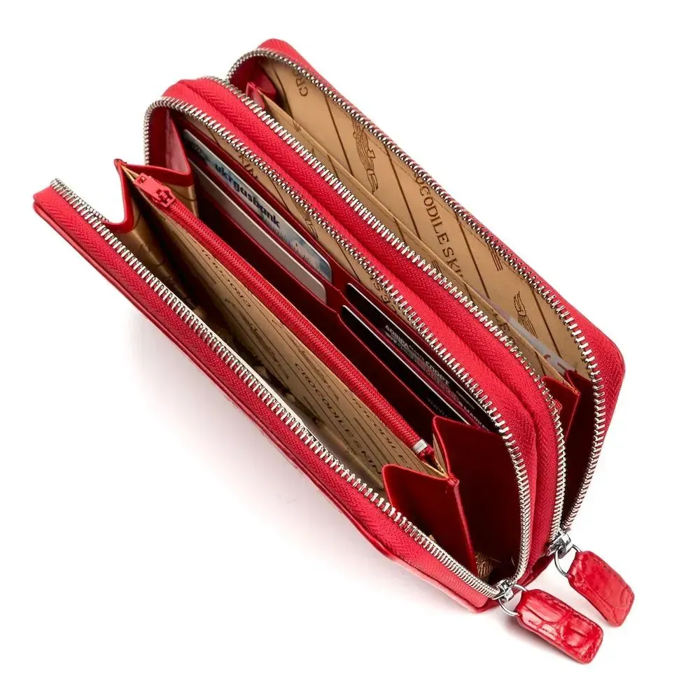 Гаманець- клатч жіночий CROCODILE LEATHER 18027 з натуральної шкіри крокодила Червоний