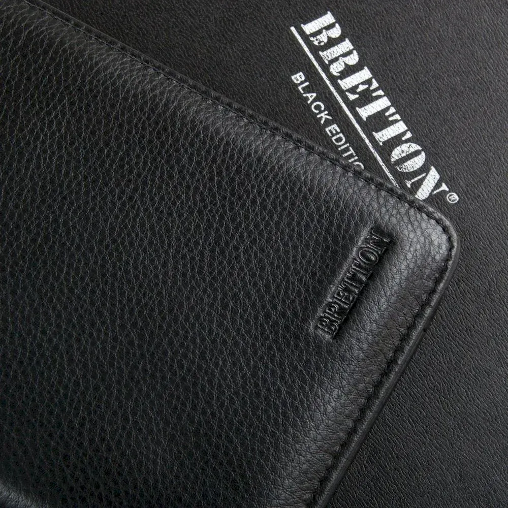 Чоловічий великий шкіряний гаманець-клатч Bretton, серія Black Edition. Виготовлений із м'якої натуральної шкіри. Одне відділення закривається на блискавку. Усередині є 2 відділення для банкнот або сматрфона, кишеня-монетниця на блискавці, 20 кишень для візитних карток і 3 великі відкриті кишені.