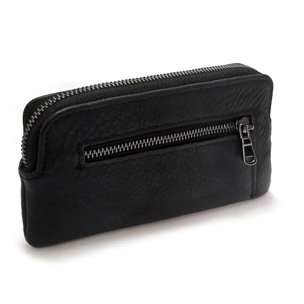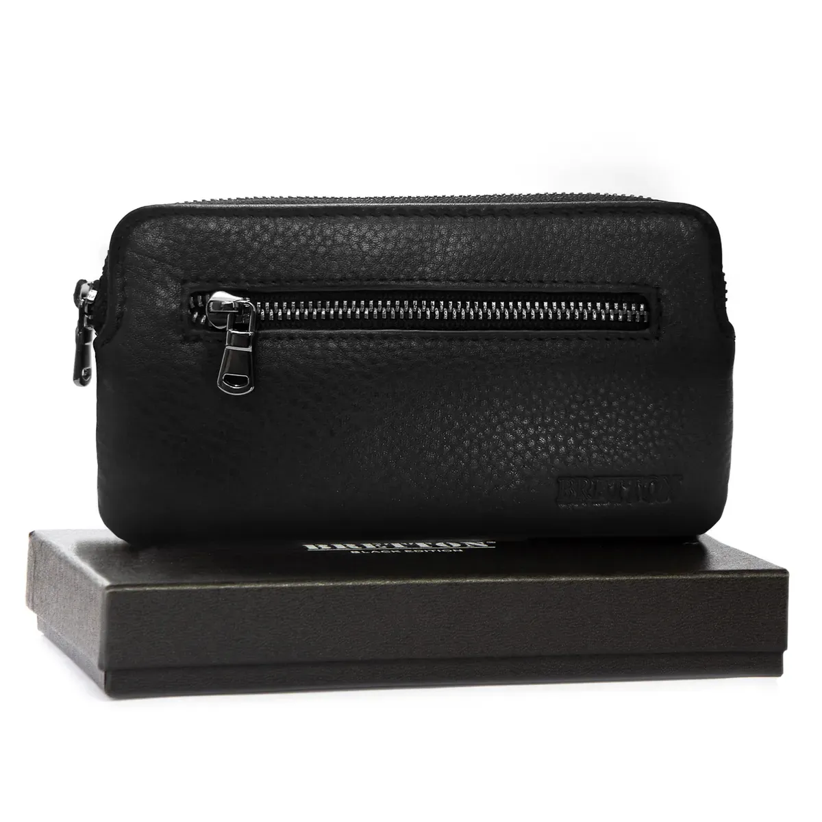 Чоловічий шкіряний гаманець - ключниця Bretton, серія Black Edition. Виготовлений з м'якої натуральної шкіри. Основне відділення для ключів закривається на блискавку. Зовні, на фасаді та на звороті є кишені на блискавці.
