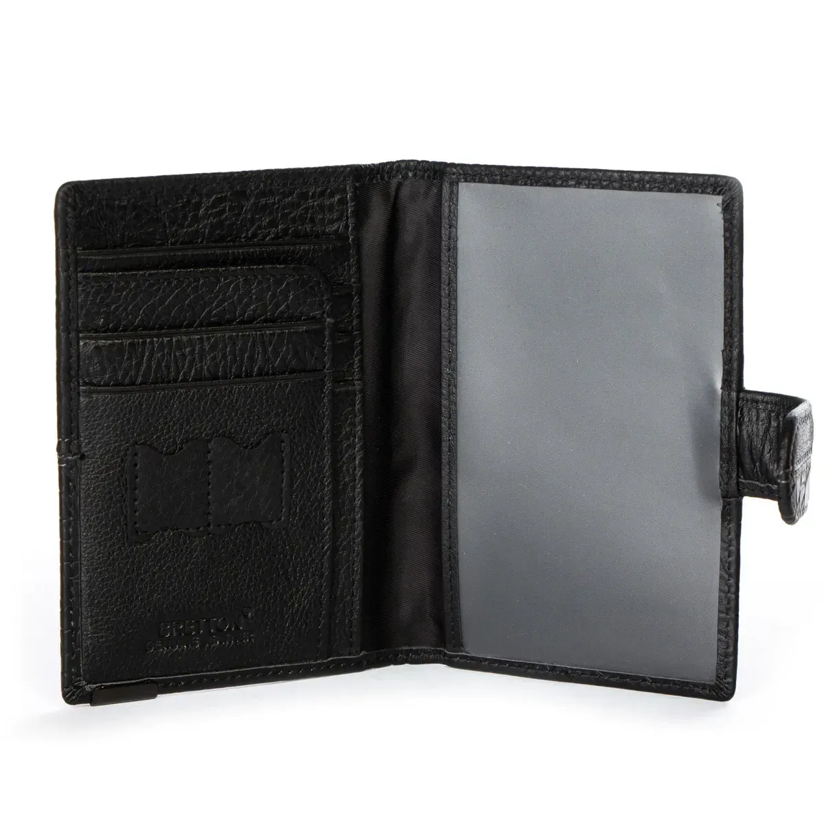 Чоловіча шкіряна обкладинка для паспорта Bretton, серія Black Edition. Виготовлена із м'якої натуральної шкіри. Всередині є 6 відкритих кишень для карток.