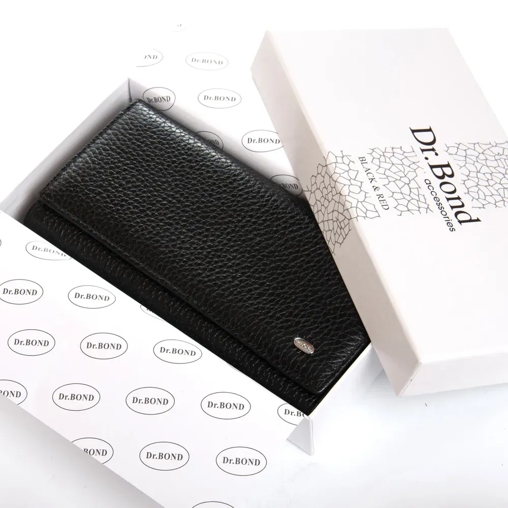 Женский большой классический кожаный кошелек Dr.Bond серии Black&Red.