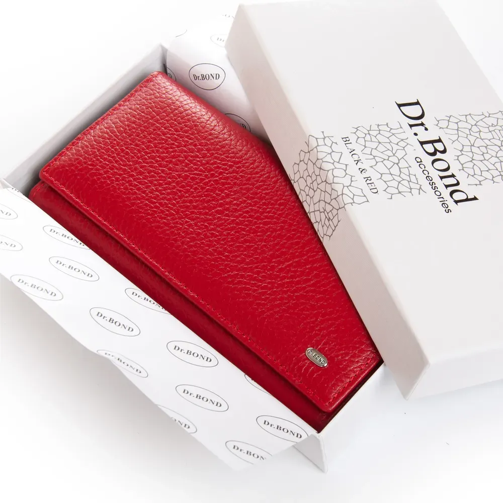 Женский большой классический кожаный кошелек Dr.Bond серии Black&Red.