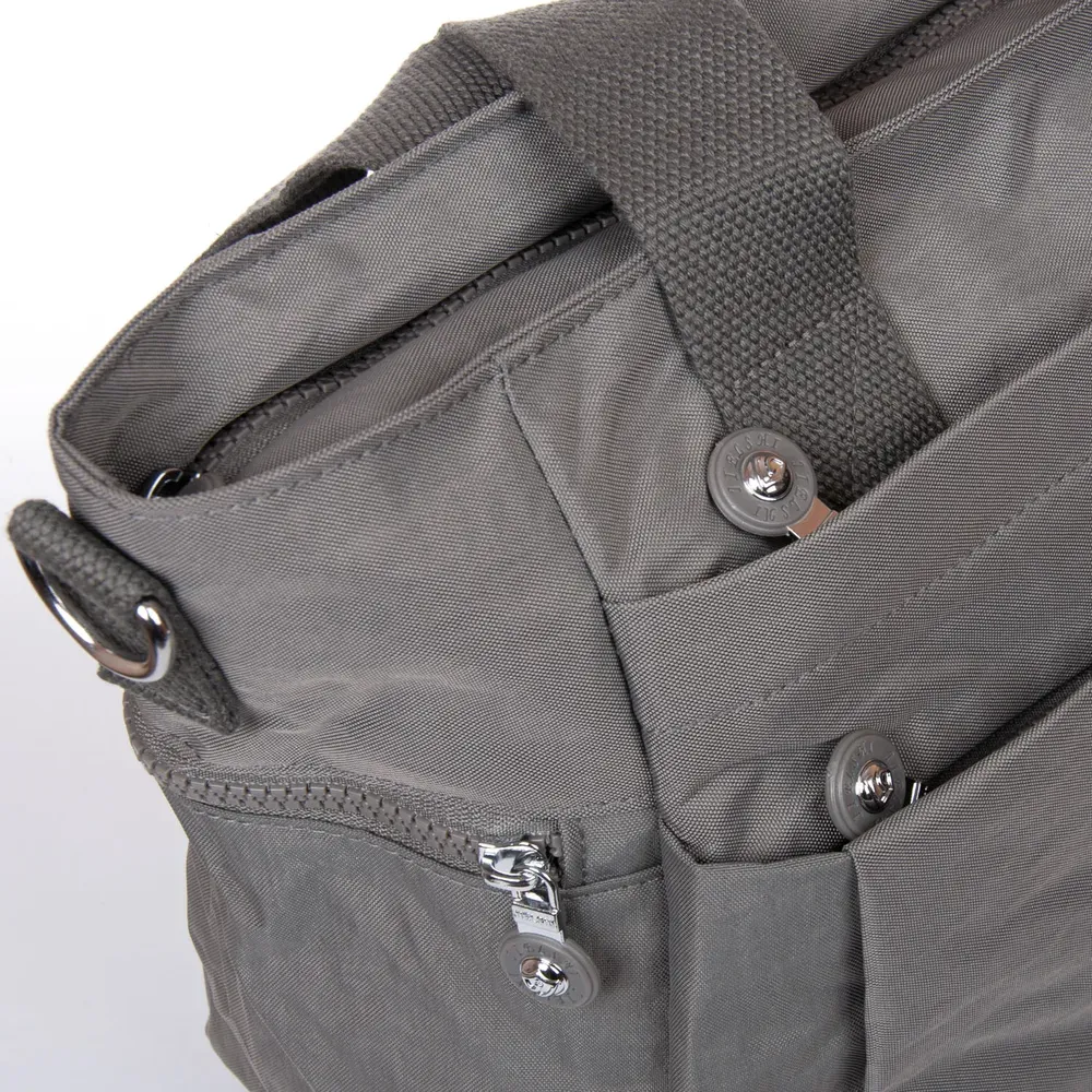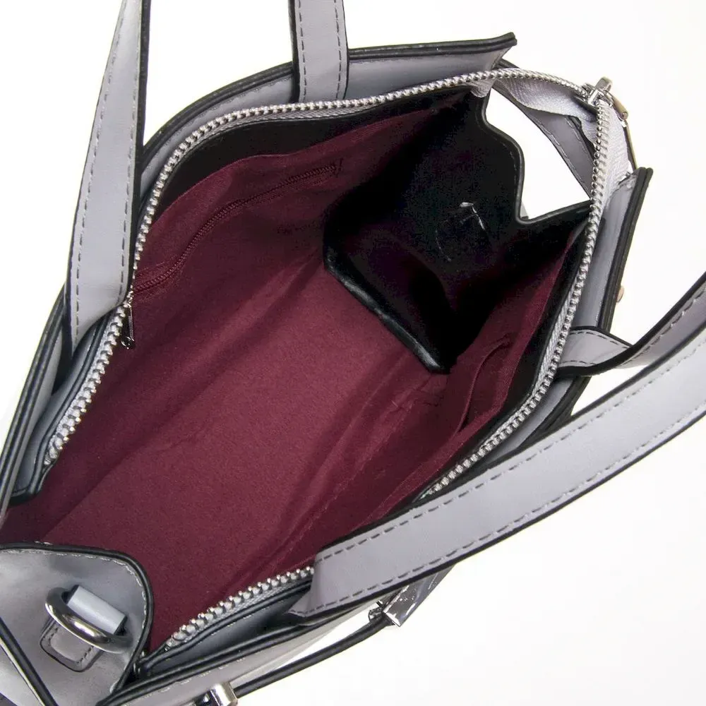Внутри находятся 2 открытых отделения для банкнот, разделенные кожаной перегородкой и одно отделение на молнии, 5 карманов для визитных карт. Снаружи кошелька на фасаде расположен карман-монетница под клапаном на кнопке.