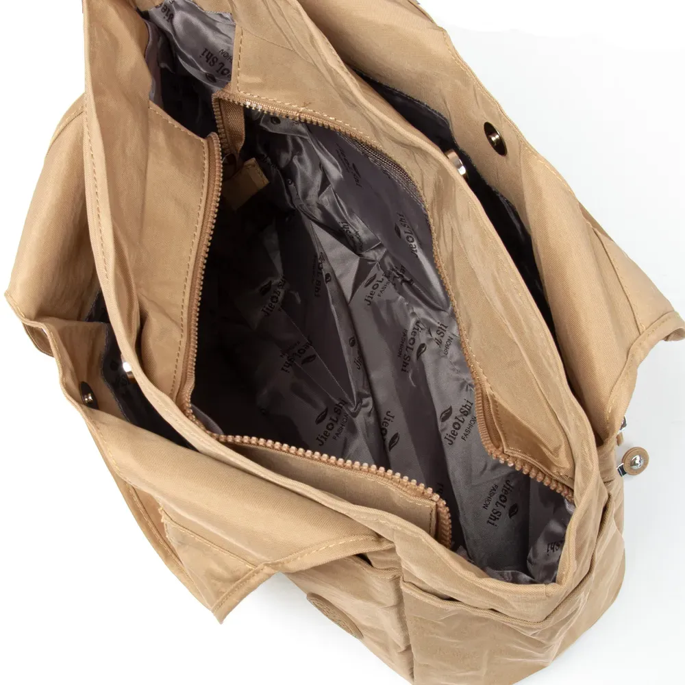 Внутри находятся 2 открытых отделения для банкнот, разделенные кожаной перегородкой и одно отделение на молнии, 5 карманов для визитных карт. Снаружи кошелька на фасаде расположен карман-монетница под клапаном на кнопке.