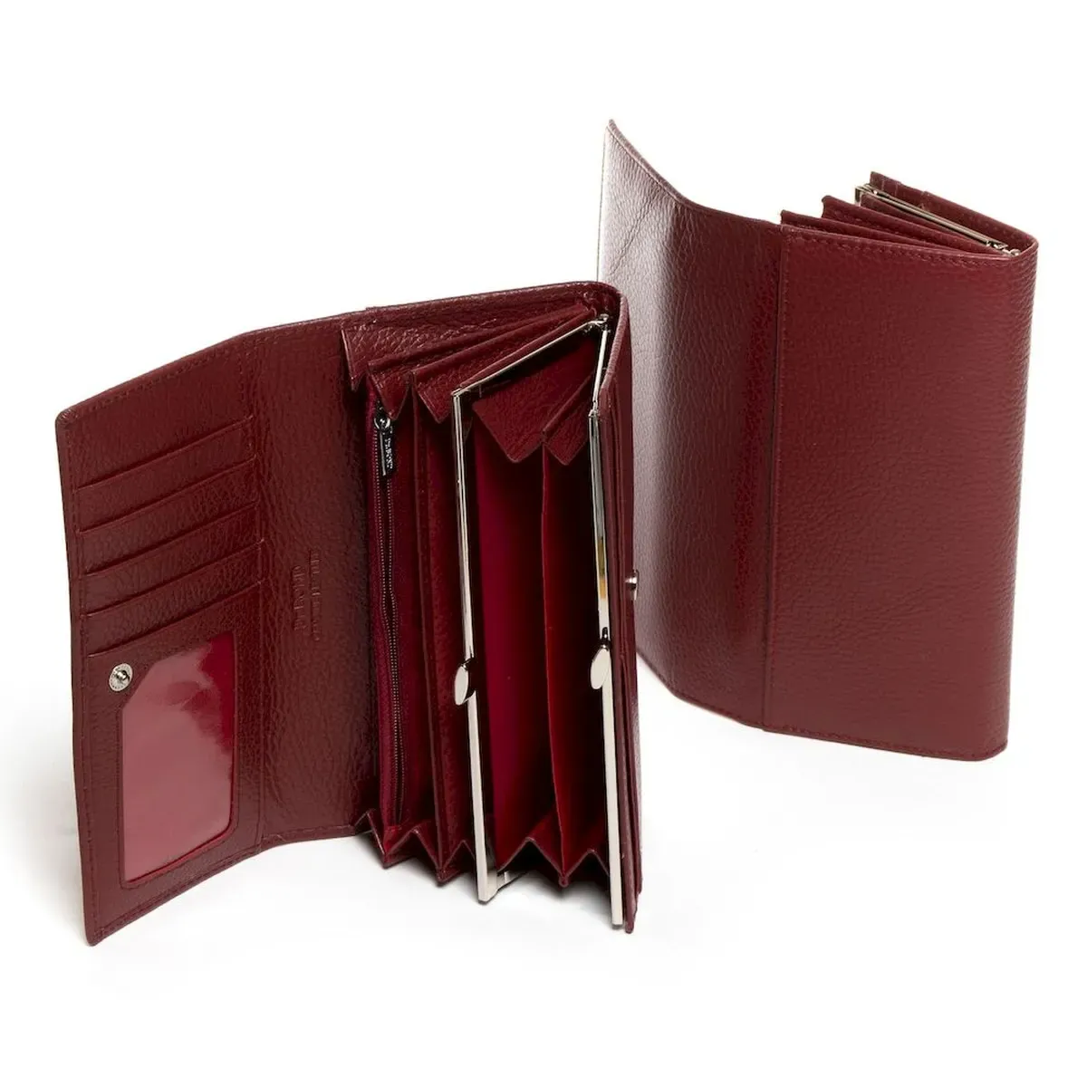 Великий шкіряний жіночий гаманець Dr.Bond. Закривається кнопку. Усередині знаходяться три відділення для банкнот, монетниця на клямці, велика відкрита кишеня та кишеня на блискавці. Дев'ять кишень для карток і одна кишеня виконана прозорою. Зовні на звороті є велика відкрита кишеня.