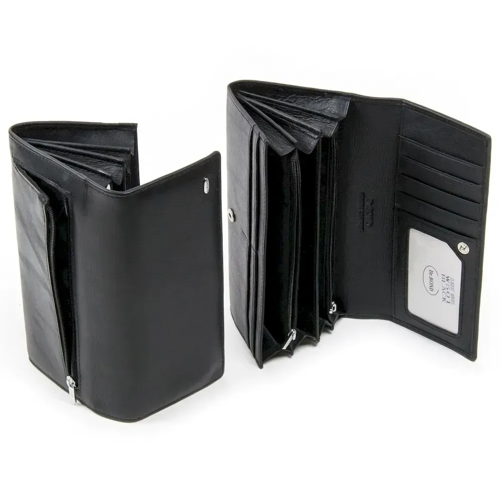 Великий полегшений жіночий гаманець Dr.Bond. Виготовлений із натуральної м'якої шкіри з природною текстурою. Закривається кнопку. Усередині знаходяться 4 відділення для банкнот, дві кишені-монетниці на блискавці, велика відкрита кишеня та 9 кишень для карток та візиток. Зовні гаманець на звороті є кишеню на блискавці. Розмір (см) 18,5*9*3,5