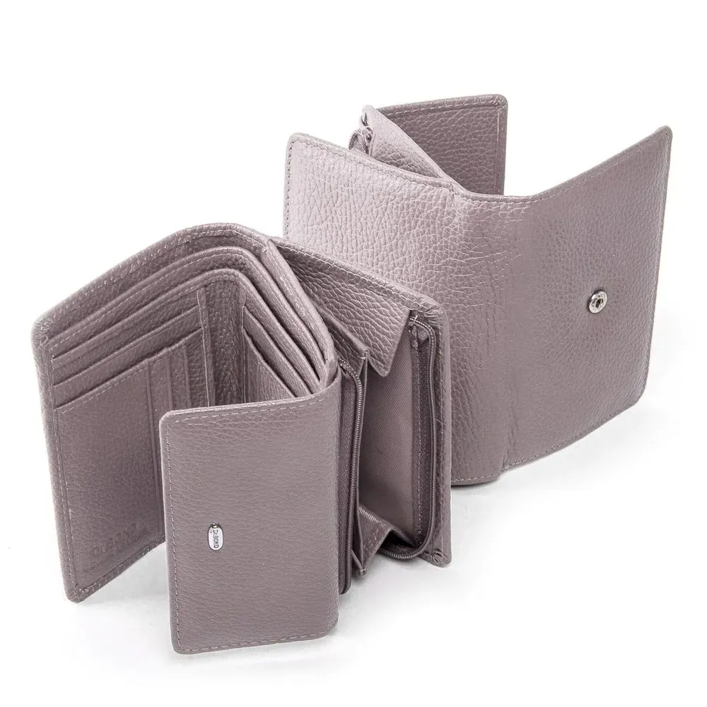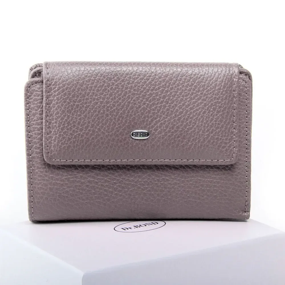 Жіночий гаманець Dr.Bond. Виготовлений із натуральної м'якої шкіри з природною текстурою. Основне відділення закривається клапаном на кнопці. Усередині знаходиться два відкритих відділення для банкнот розділені шкіряною перегородкою, 9 кишень для візитних карток та 2 великі кишені. Зовні гаманець на звороті знаходиться подвійна монетниця на блискавці.