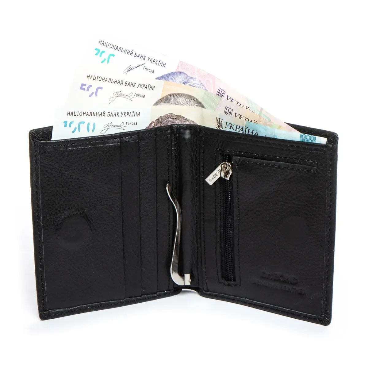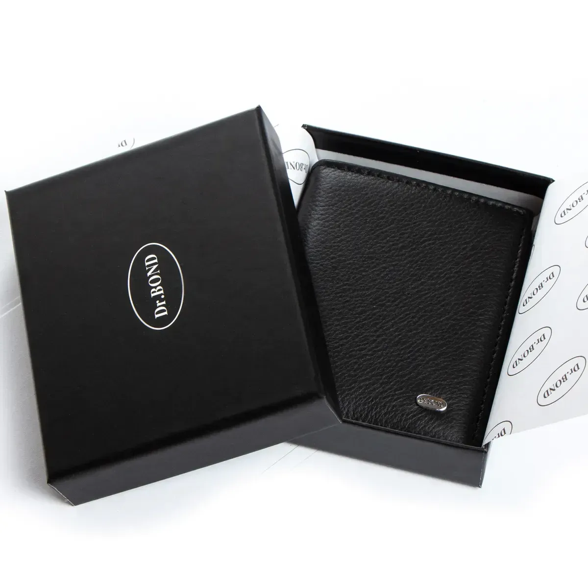 Чоловічий компактний шкіряний гаманець Dr. Бонд. Закривається на магніт. Усередині знаходяться одне відкрите відділення для банкнот, затискач для банкнот, 6 кишень для карток та монетниця на блискавці.