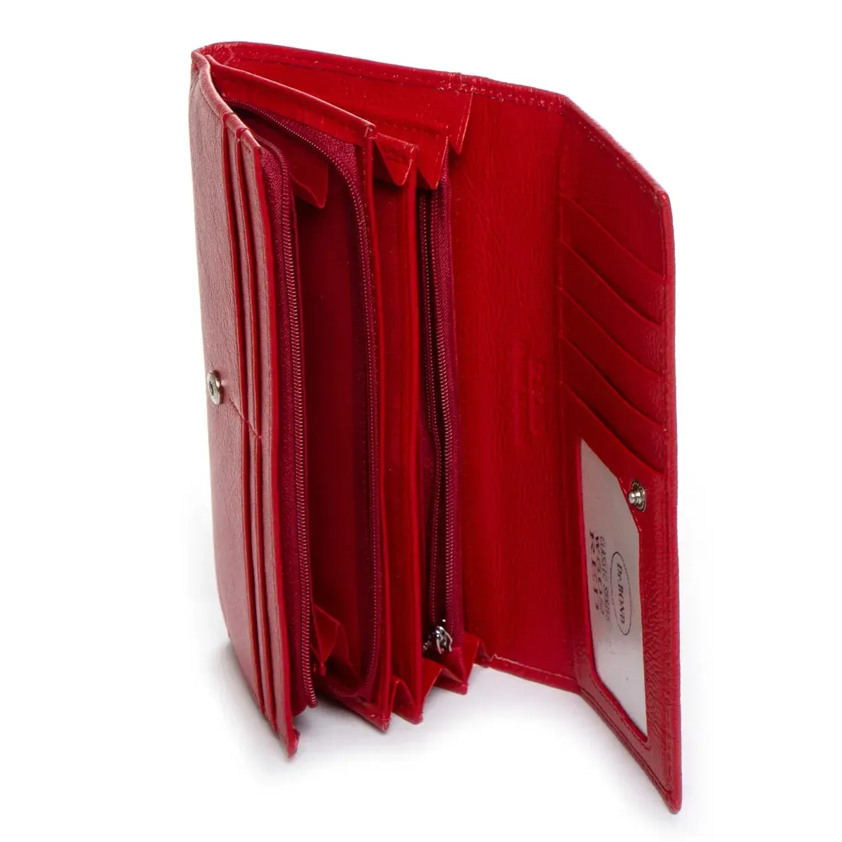 Великий полегшений жіночий гаманець DR. BOND. Виготовлений із натуральної м'якої шкіри з природною текстурою. Закривається кнопку. Усередині знаходяться 3 відкритих відділення для банкнот і одне подвійне відділення на блискавці, кишеня-монетниця на блискавці, велика відкрита кишеня та 9 кишень для карток та візиток. Зовні гаманця на звороті є кишеня на блискавці.