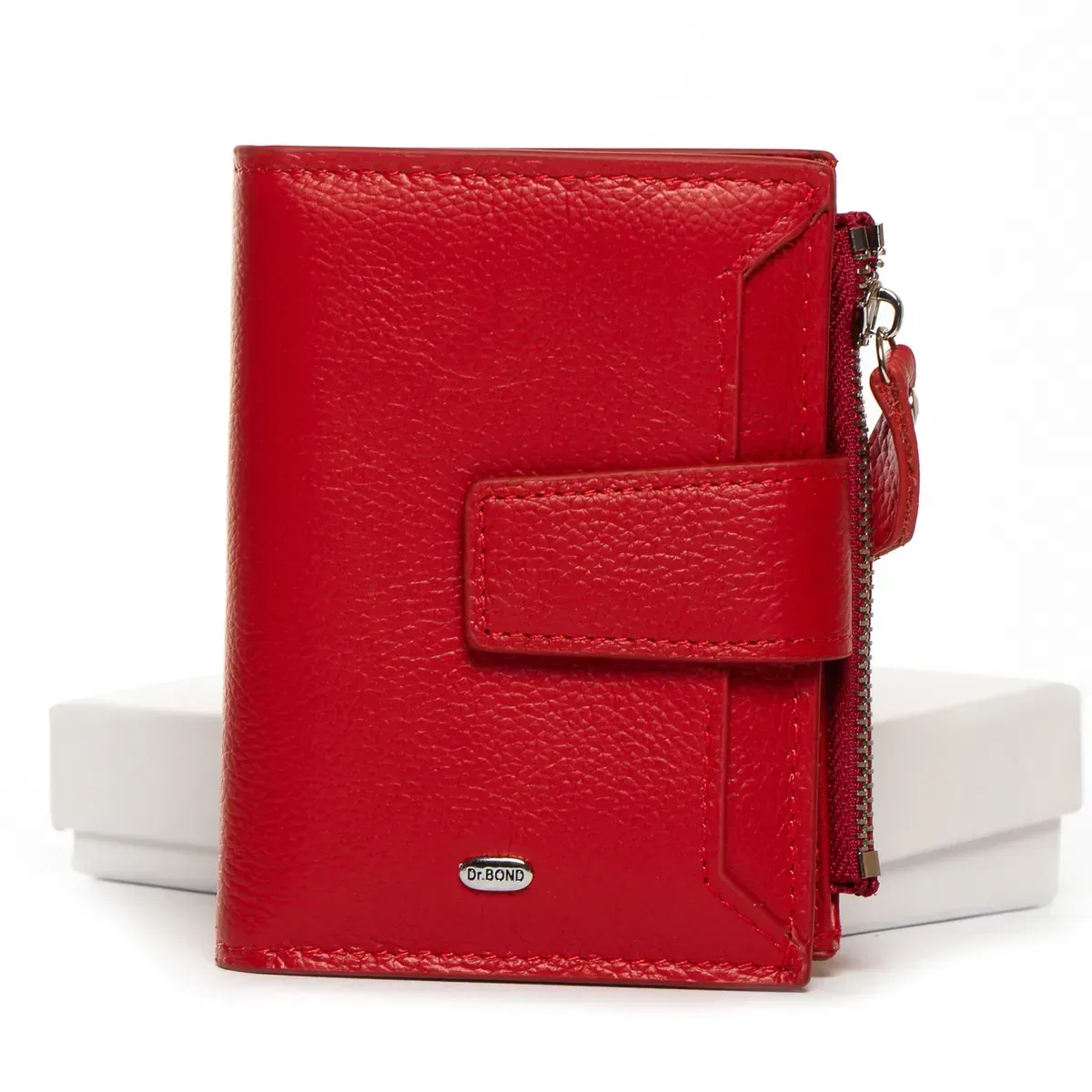 Жіночий шкіряний гаманець Dr.Bond. Закривається клапаном на кнопці. Усередині знаходяться два відкриті відділення для банкнот, 13 кишень для візитних карток. на відкидному блоці та 4 великі кишені. Зовні гаманця є монетниця на блискавці та відкрита кишеня на фасаді.