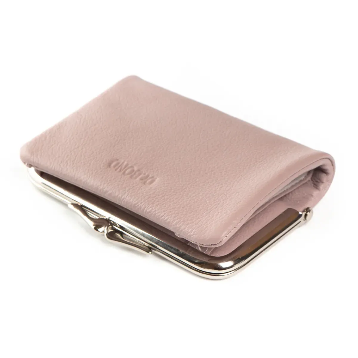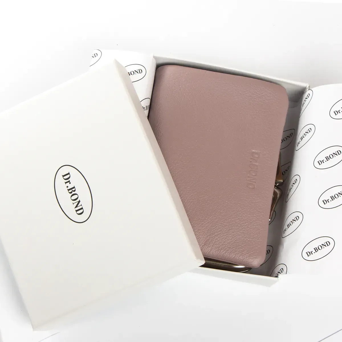 Жіночий шкіряний гаманець Dr.Bond. Складається вдвічі та закривається на кнопку. Усередині знаходяться: одне відкрите відділення для банкнот, 4 кишені для візитних карток та 2 великі кишені. Зовні гаманця є монетниця на клямці.