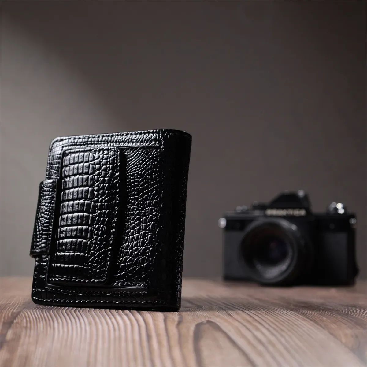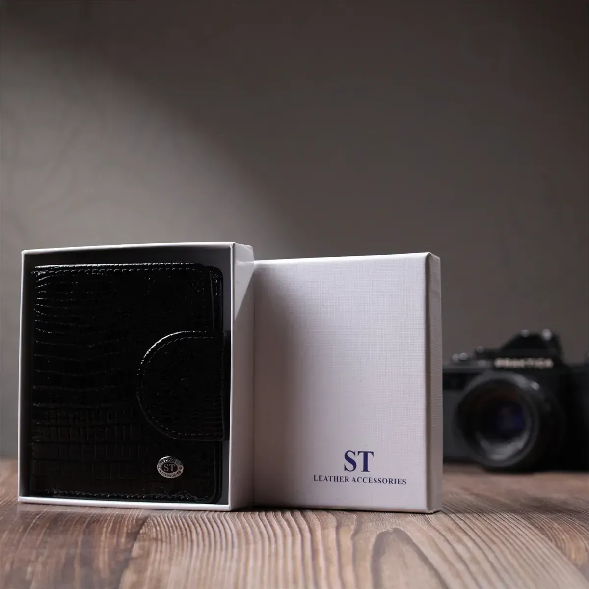 Гаманець для жінок середнього розміру з натуральної шкіри шкіри ST Leather 22686 Чорний