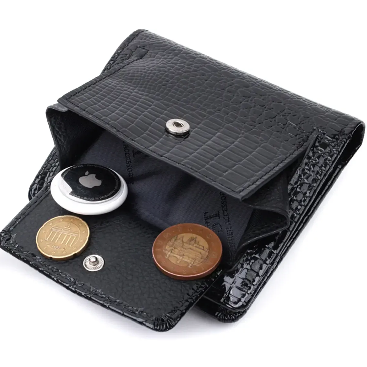 одна кишеня на блискавці; - дванадцять слотів для пластикових карток; одна кишеня під плівкою; - кишеня для монет зовні; шкіри з тиснення під рептилію. Має все необхідне, щоб стати Вам незамінним аксесуаром у повсякденному житті. Ви легко помістите в нього паперові купюри, монети, документи, картки. На лицьовій стороні, у правому нижньому кутку розташований металевий логотип виробника, що є запорукою якості виробу. Запакований аксесуар у білу щільну картонну коробку з фірмовим логотипом.
