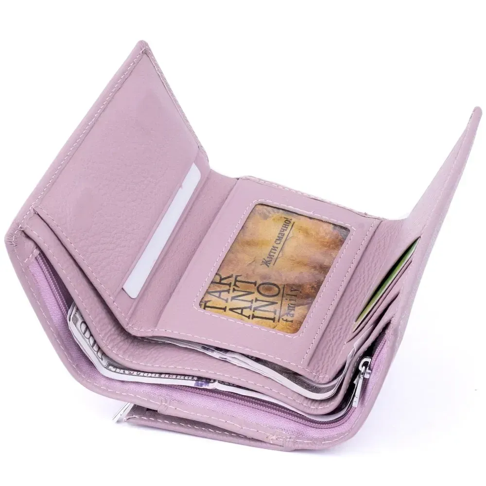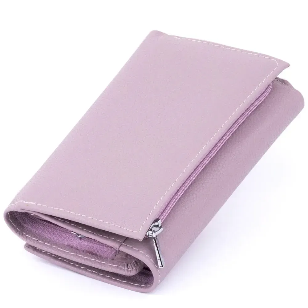 Компактний, місткий гаманець горизонтального типу в ніжному ліловому кольорі. Цей колір підійде для дівчат, які віддають перевагу ніжним пастельним тонам. Аксесуар надасть вам легкості та жіночності. Гаманець у м'якій шкірі приємний на дотик. Зручно сидить у руці. Модель поміститься у маленьку сумку. Гаманець у 3 складання. На тильній стороні гаманця монетник на блискавці із двома відділеннями. У такій моделі зручно розташовувати купюри і дрібниця. Доступна вартість аксесуара приємно вас здивує. Виріб прослужить далеко не один рік. У слот під плівкою можна покласти фотографію чи іншу кредитку. Гаманець - ідеальний подарунок для близької людини.