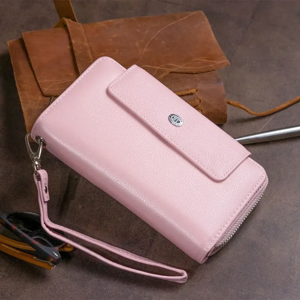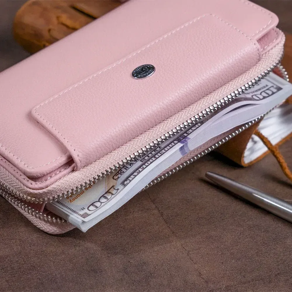 Гаманець зі шкіри на клямці ST Leather 19344 Рожевий