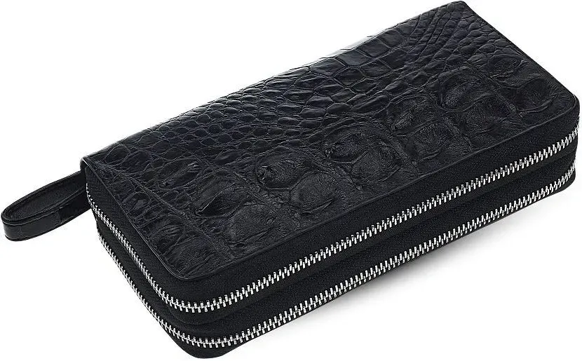 Клатч на дві блискавки з натуральної шкіри крокодила. Кожен виріб з цього матеріалу має свою незвичайну структуру і неповторний візерунок. В аксесуарі використана виключно якісна фурнітура, срібний колір. Вироби зі шкіри крокодила завжди вважалися великою розкішшю, так як у світі не так багато компаній, які займаються виробленням такої шкіри, оскільки цей процес дійсно надзвичайно трудомісткий. Така модель дуже містка, легко вміщується мобільний телефон, документи і інші дрібниці. Ідеальний подарунок для людей, які люблять все дороге та оригінальне.