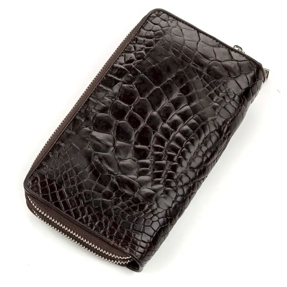Гаманець-клатч CROCODILE LEATHER 18173 із натуральної шкіри крокодила Коричневий