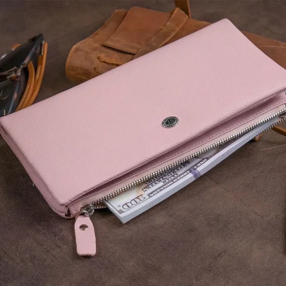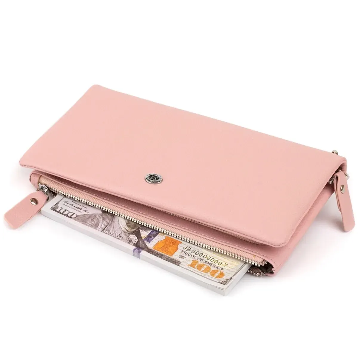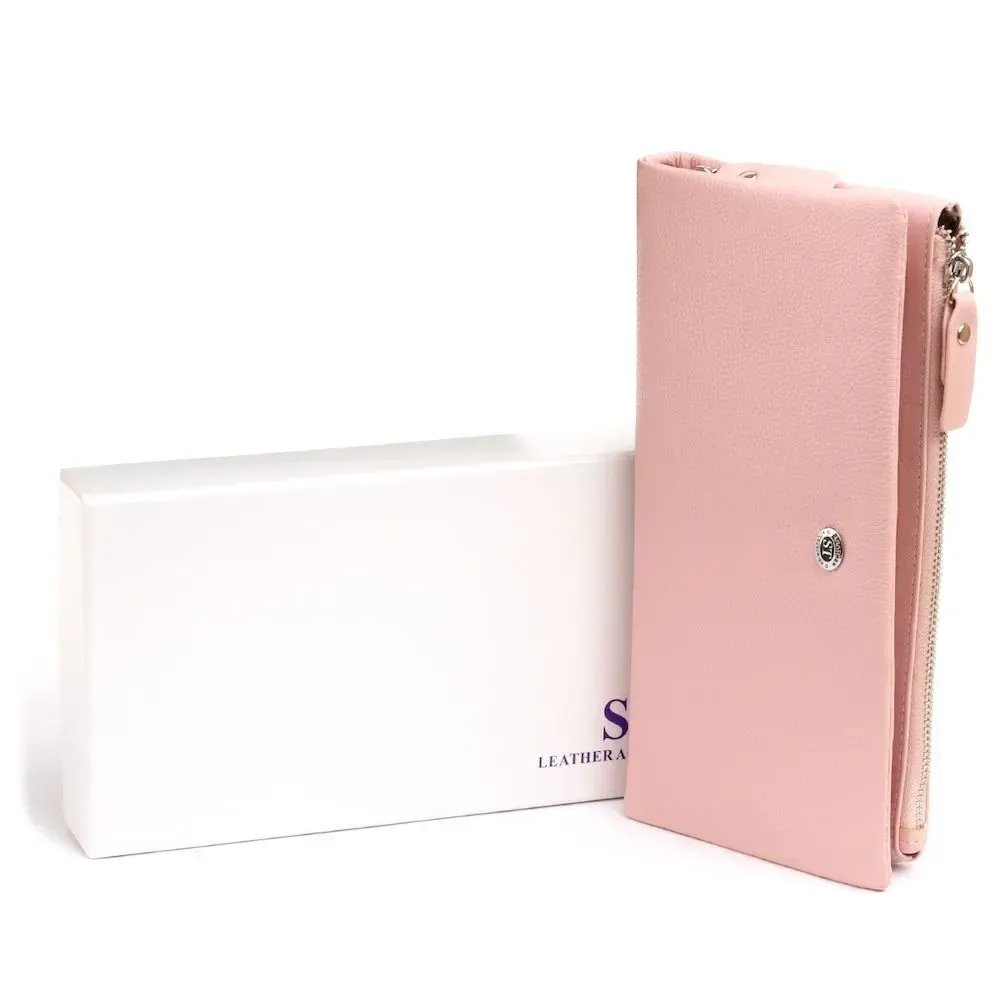 Гаманець-клатч зі шкіри з кишенею для мобільного ST Leather 19313 Рожевий