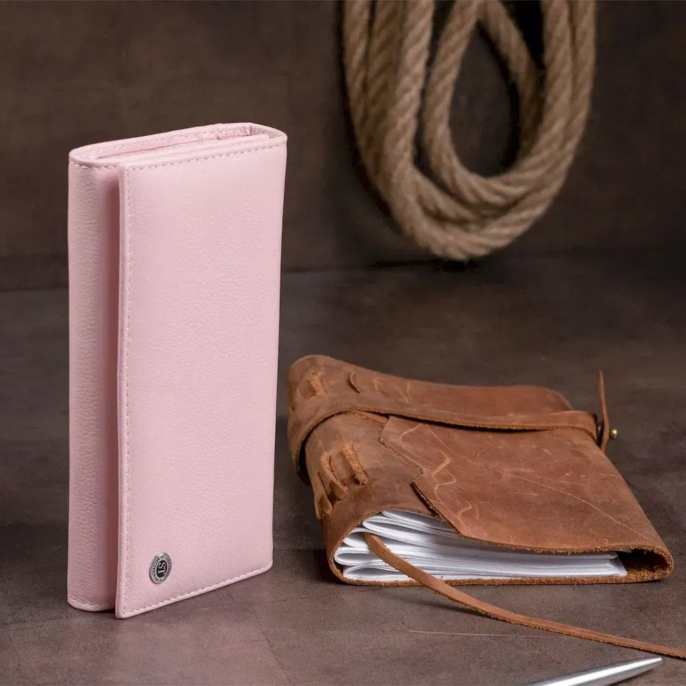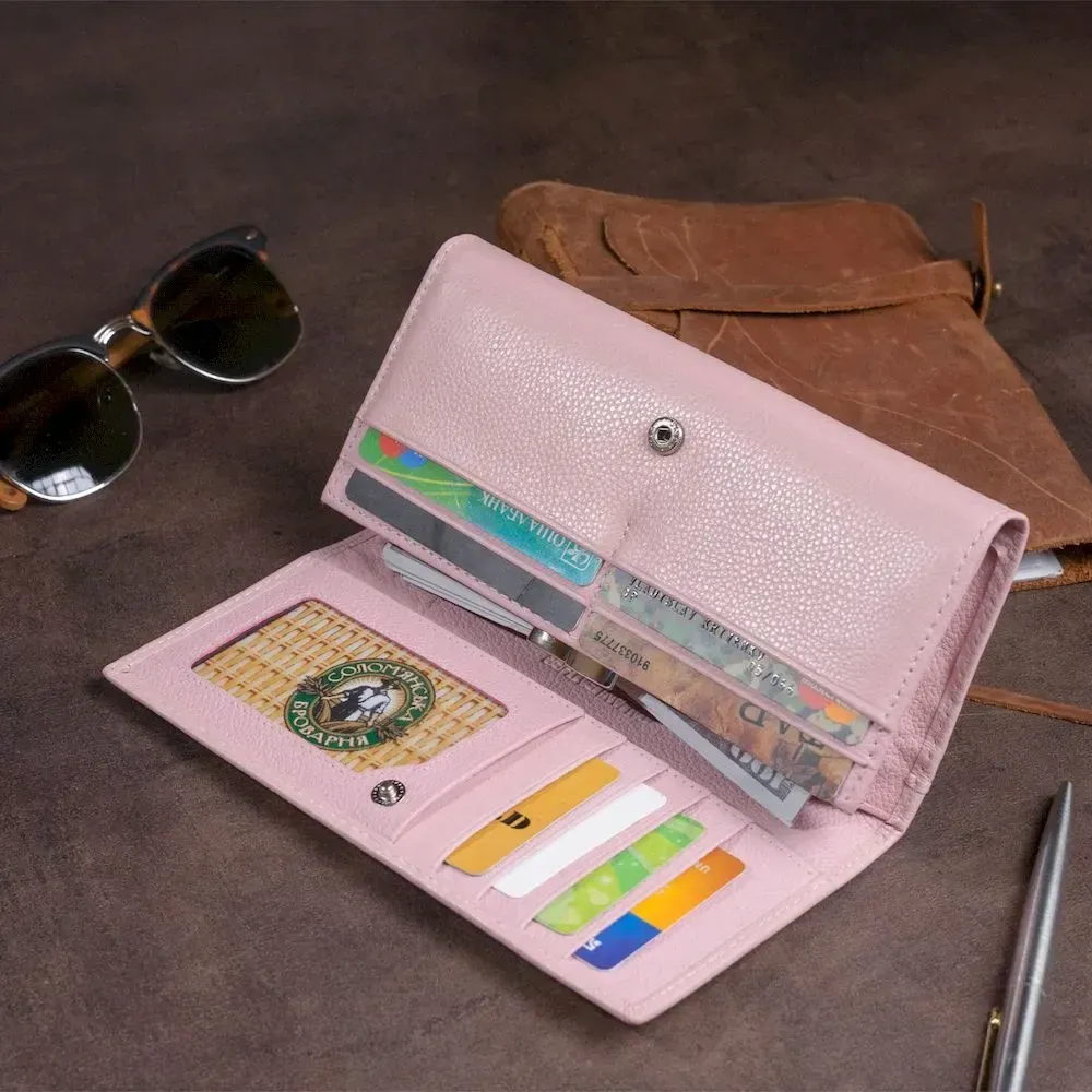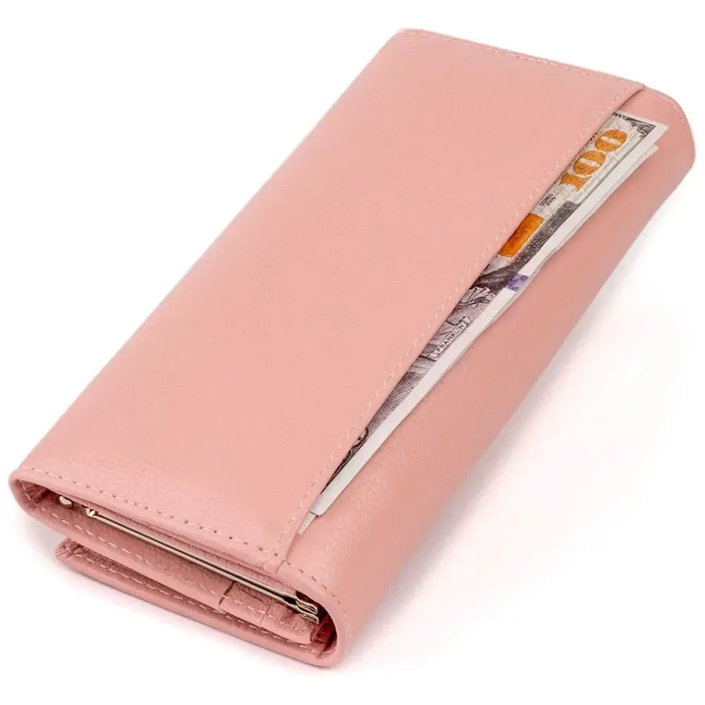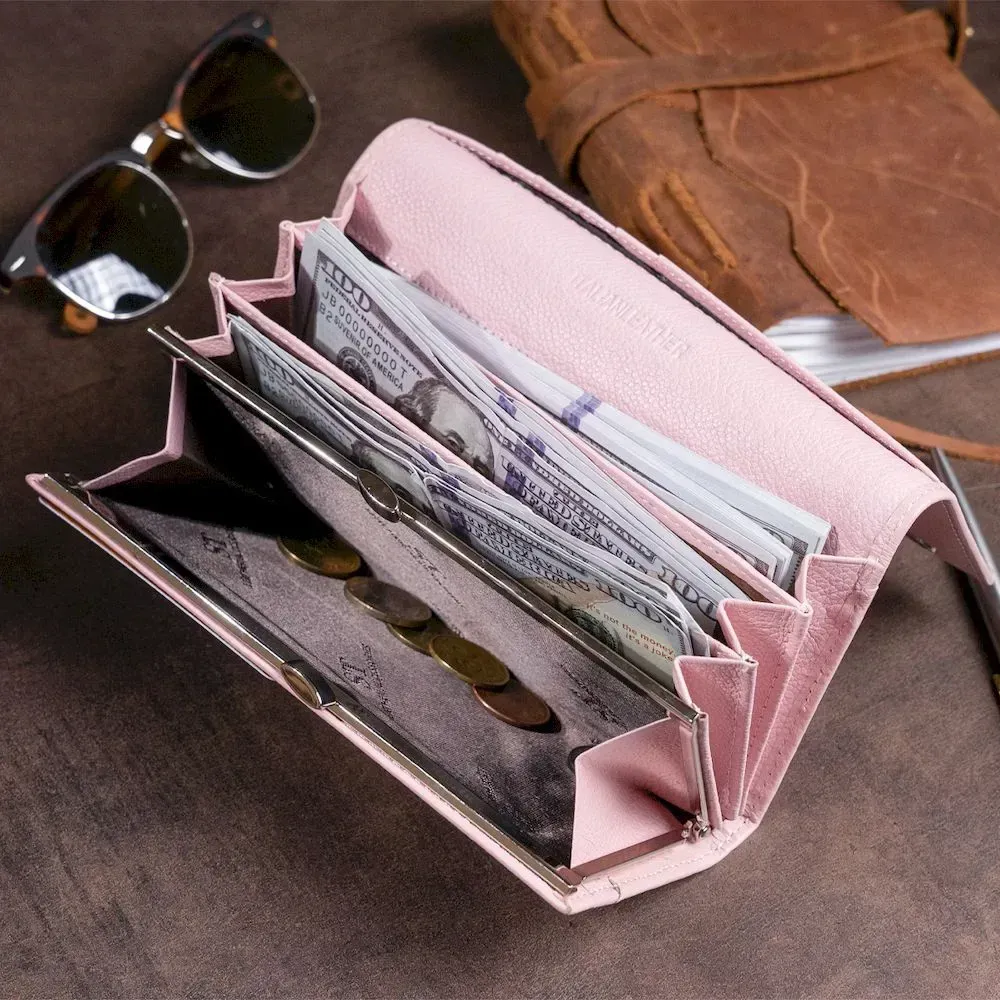 Гаманець шкіряний з механічною монетницею жіночий ST Leather 19277 Рожевий