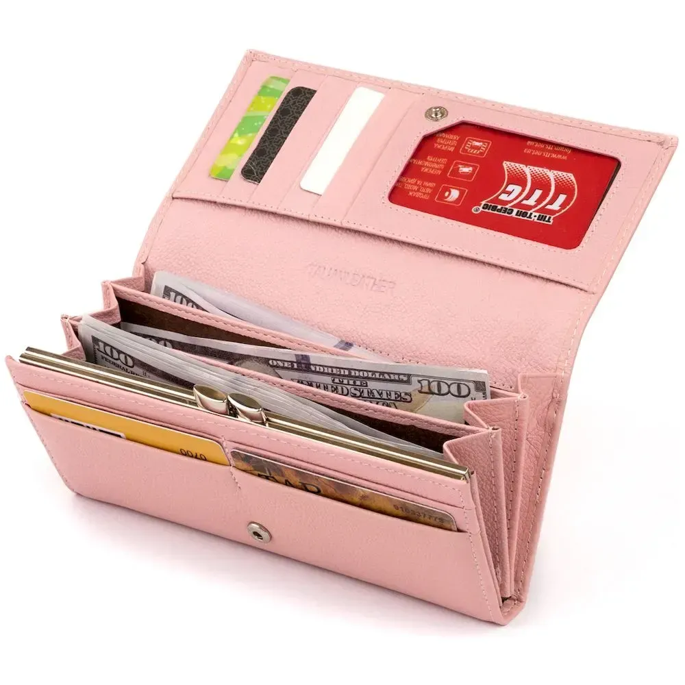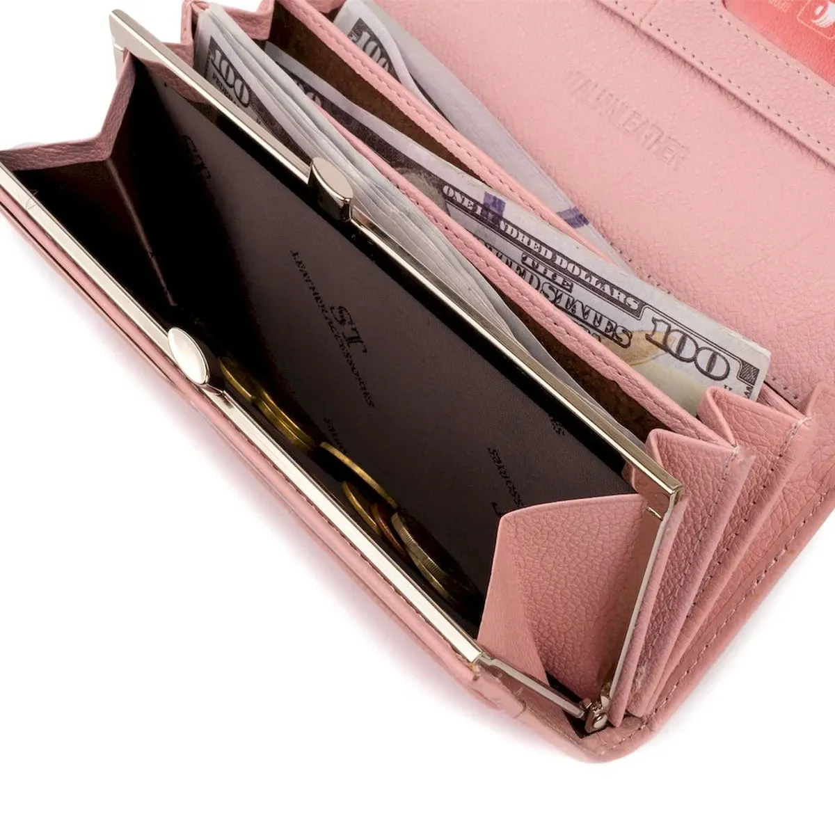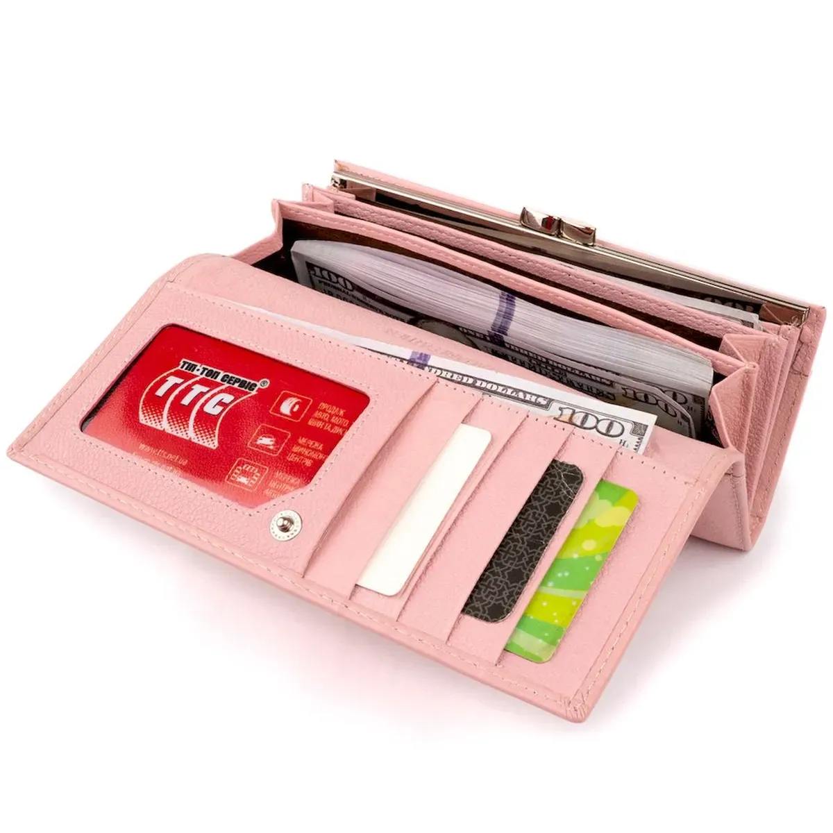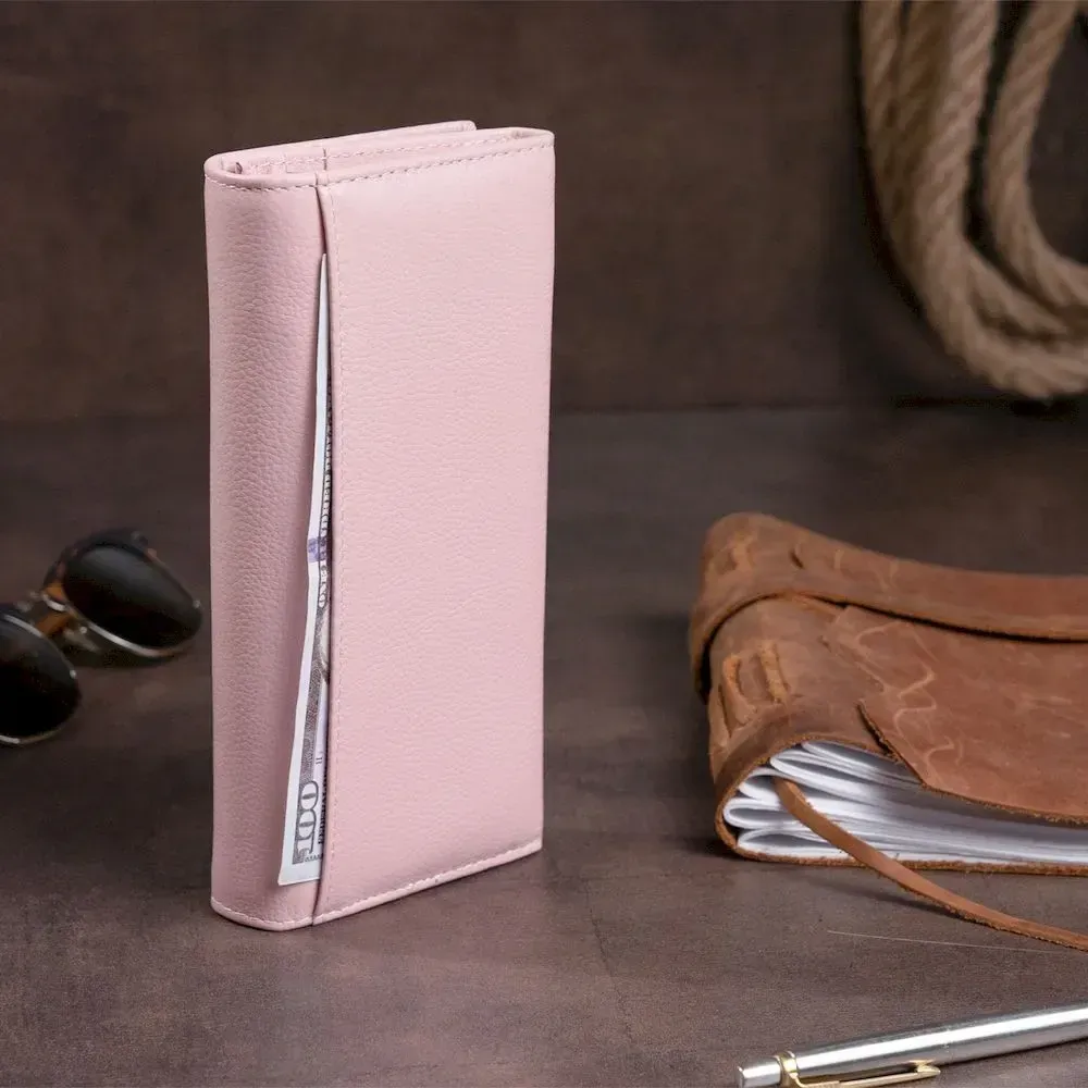 Гаманець шкіряний з механічною монетницею жіночий ST Leather 19277 Рожевий