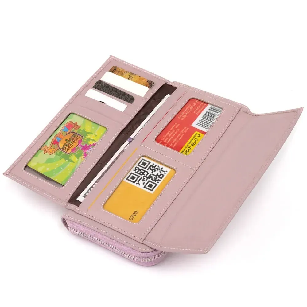 Стильний шкіряний гаманець-клатч, що складається з двох автономних частин. Перша частина для купюр, друга – для карток. З таким гаманцем вам буде легко та зручно розподілити всі купюри в порядку, щоб вони не м'ялися. Всі картки будуть ідеально розподілені в комірки і будуть в повному порядку. У комплекті до гаманця йде фірмова картонна коробка. Виріб стане чудовим подарунком для будь-якої дівчини.