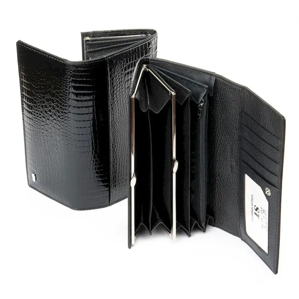 Жіночий гаманець LR шкіряний-лак Sergio Torretti W1-V black