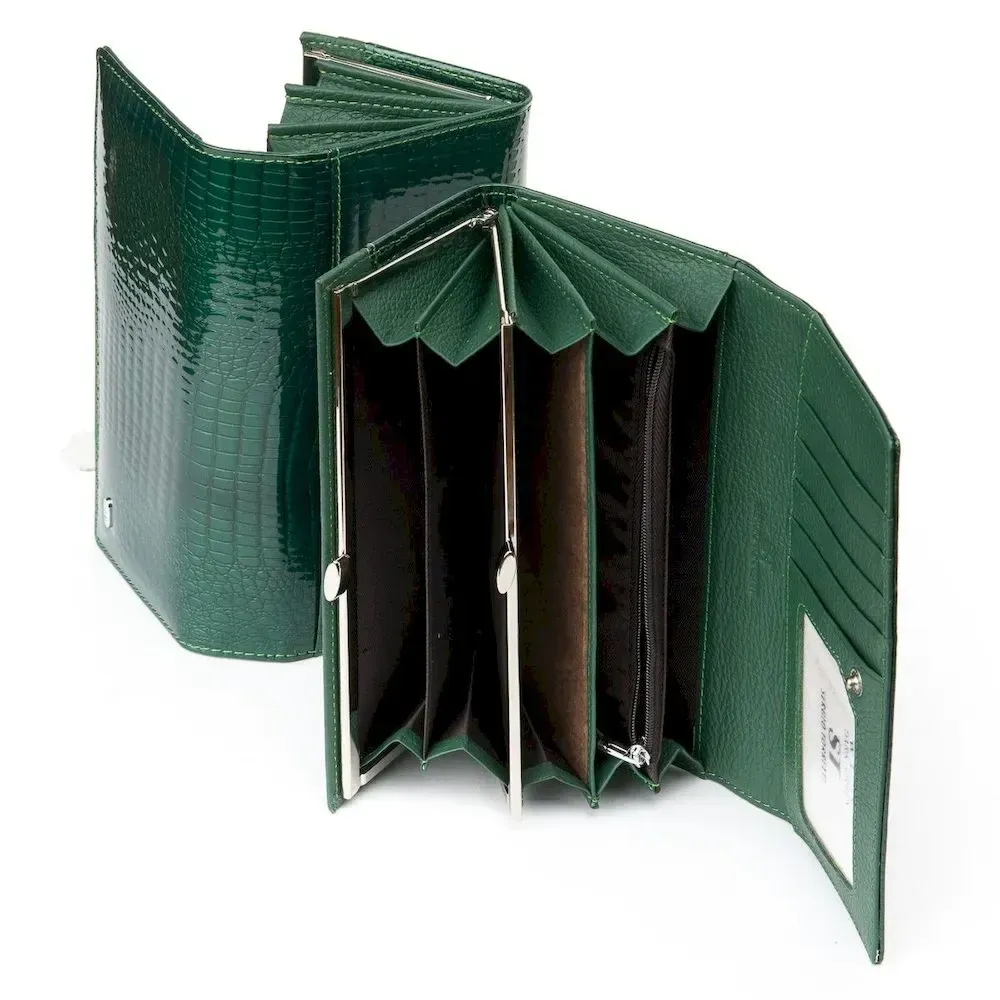 Жіночий гаманець LR шкіряний-лак Sergio Torretti W1-V dark-green