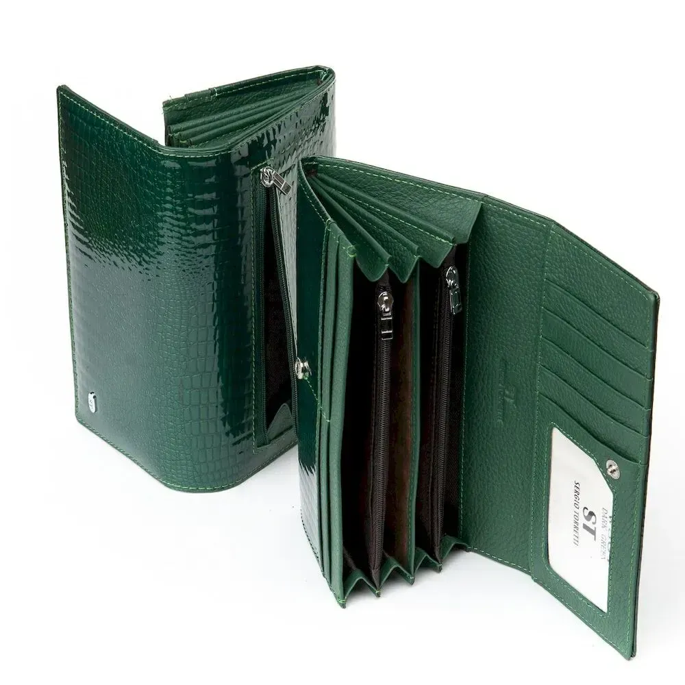 Жіночий гаманець LR шкіряний-лак Sergio Torretti W501 dark-green