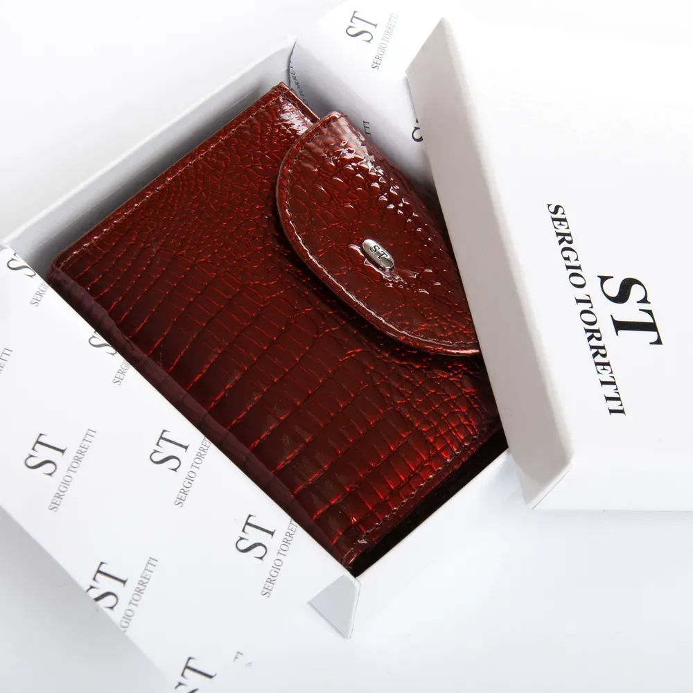 Женский компактный кожаный кошелек Sergio Torretti. Клапан закрывается на магнит.