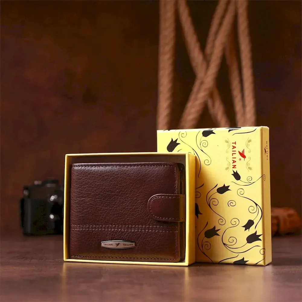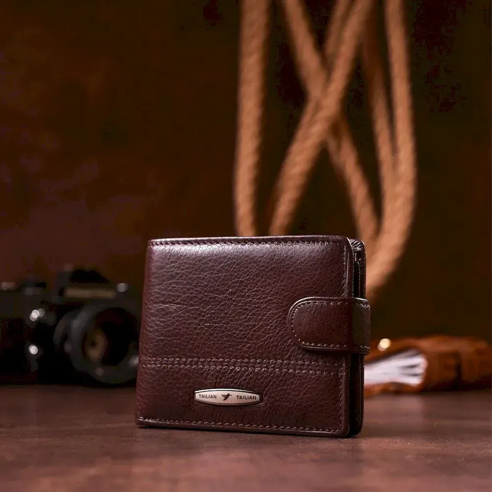 Гаманець чоловічий шкіряний флотар TAILIAN 18982 Темно-коричневий