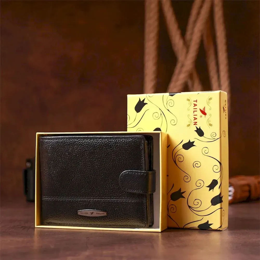 Гаманець чоловічий шкіряний флотар TAILIAN 18994 Чорний