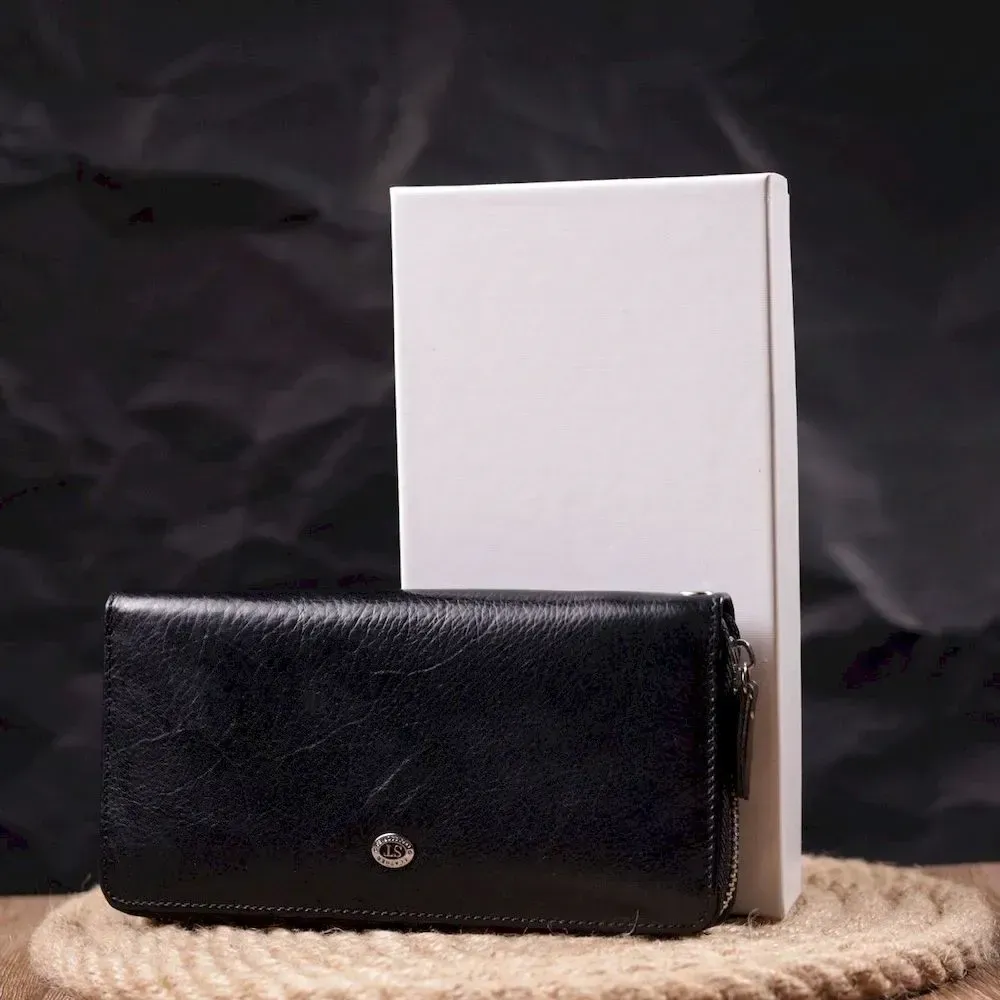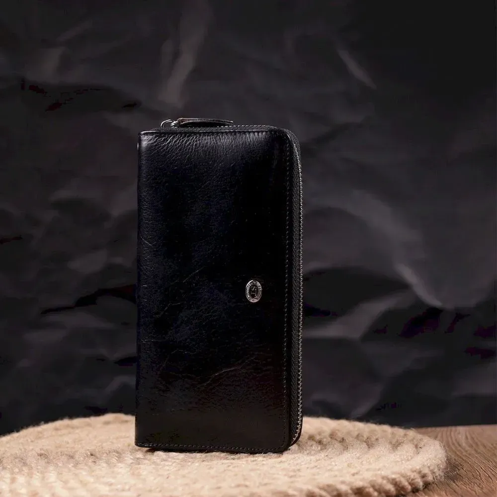 Гаманець чоловічий із натуральної гладкої шкіри на блискавці ST Leather 19410 Чорний