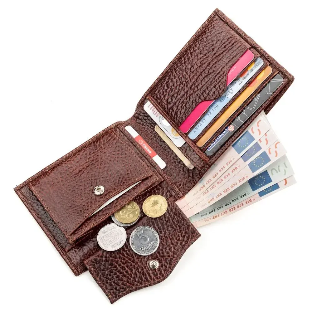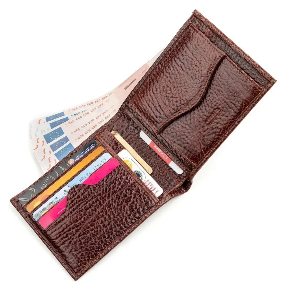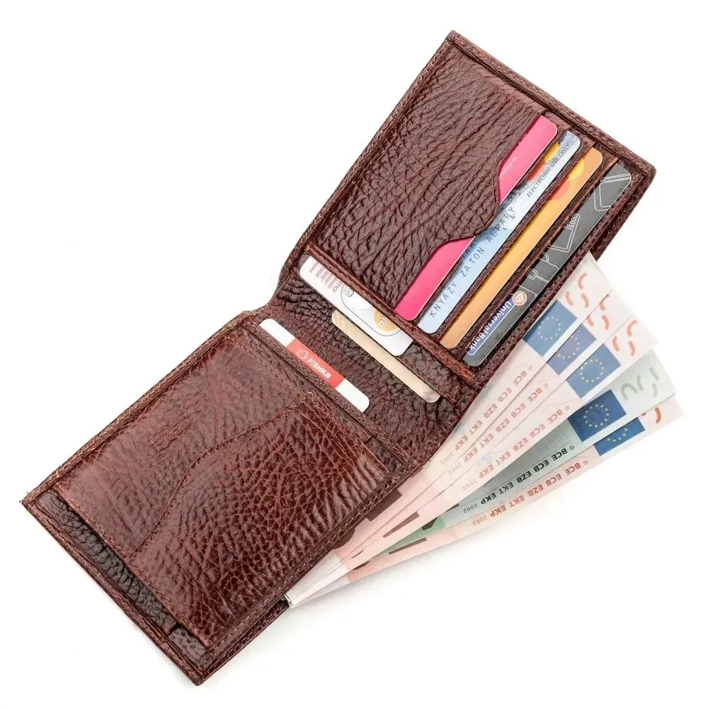 Якісний чоловічий гаманець, з натуральної фактурної шкіри, більше відомої як “флотар”. Дуже красивий та якісний аксесуар, з яким чоловік завжди буде виглядати стильно та успішно.