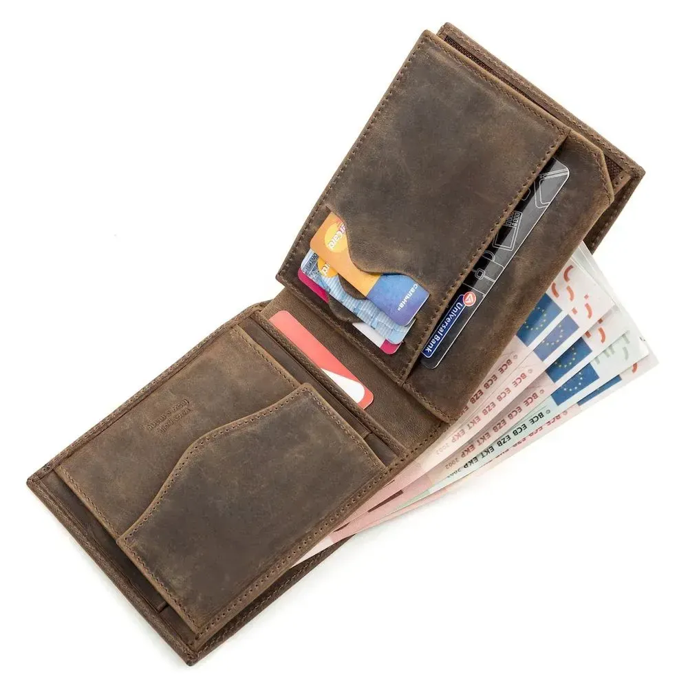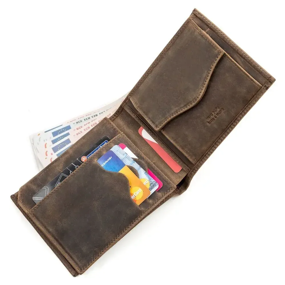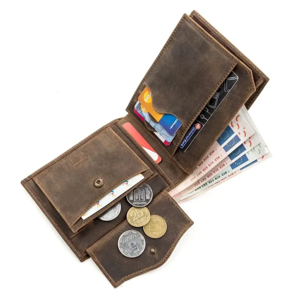 Відмінний чоловічий гаманець з вінтажної шкіри, для якої характерні потертості та неоднорідність забарвлення. Через це вироби з такої шкіри довше мають презентабельний зовнішній вигляд. Такий шкіряний гаманець шикарно лягатиме в руку, неймовірно функціональний і практичний у використанні, відмінно підкреслить стиль та статус свого власника.