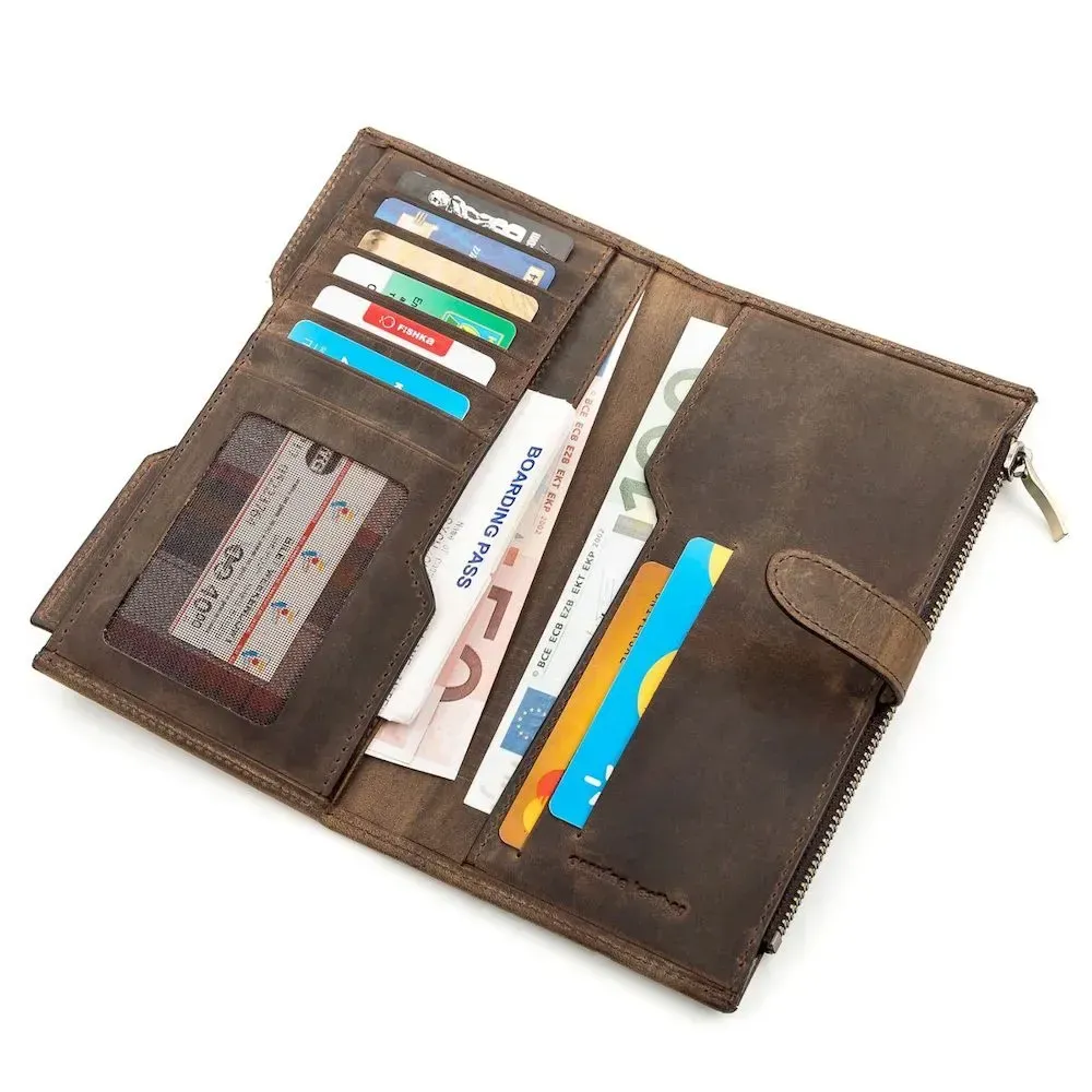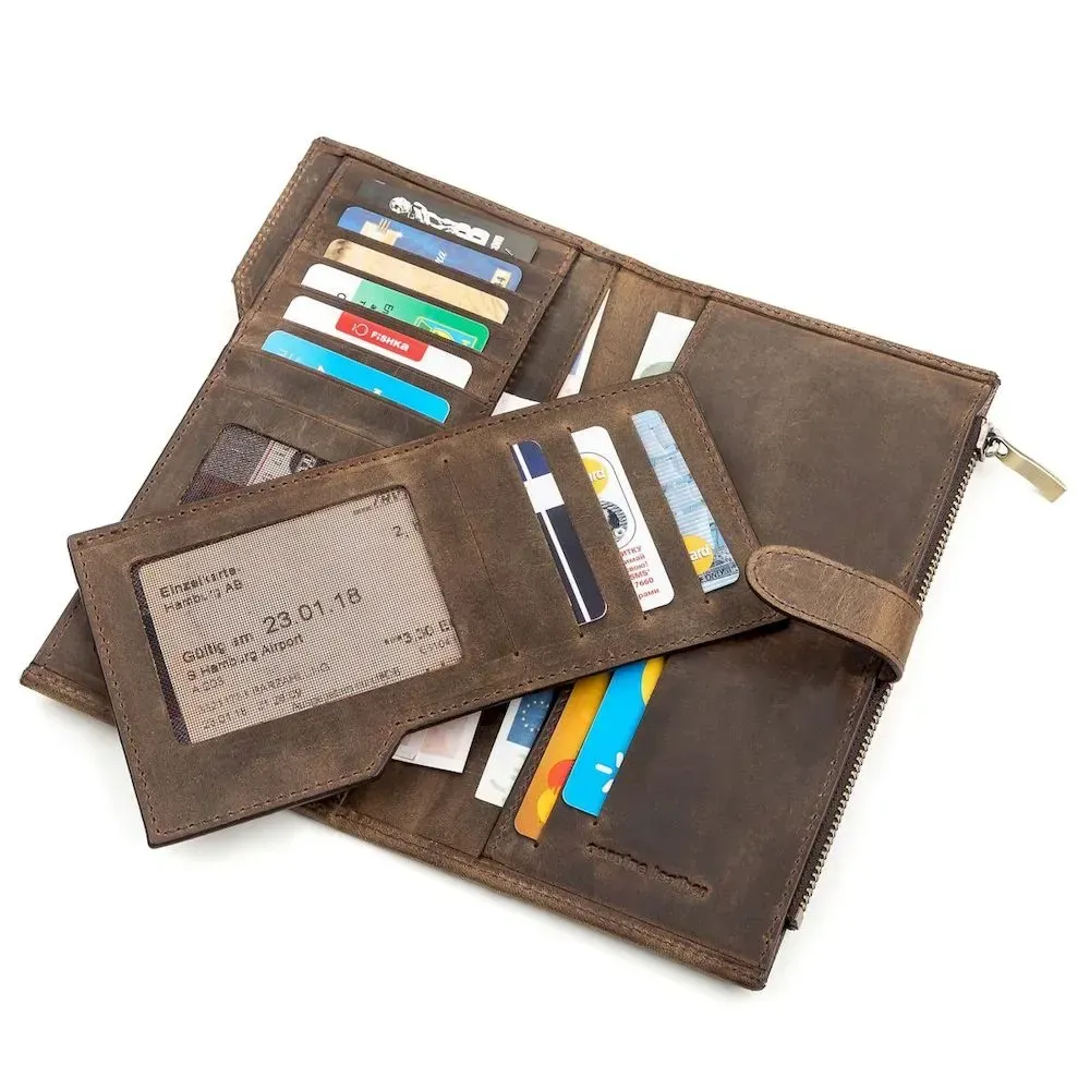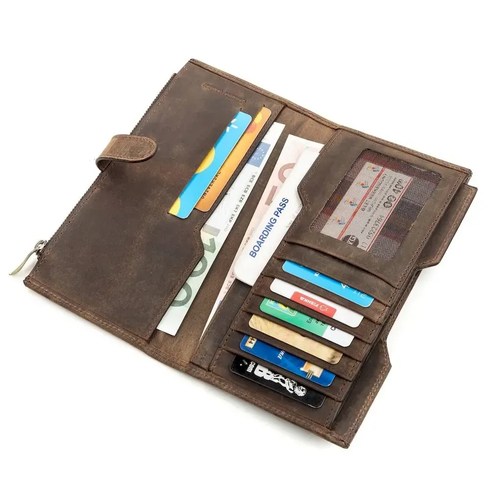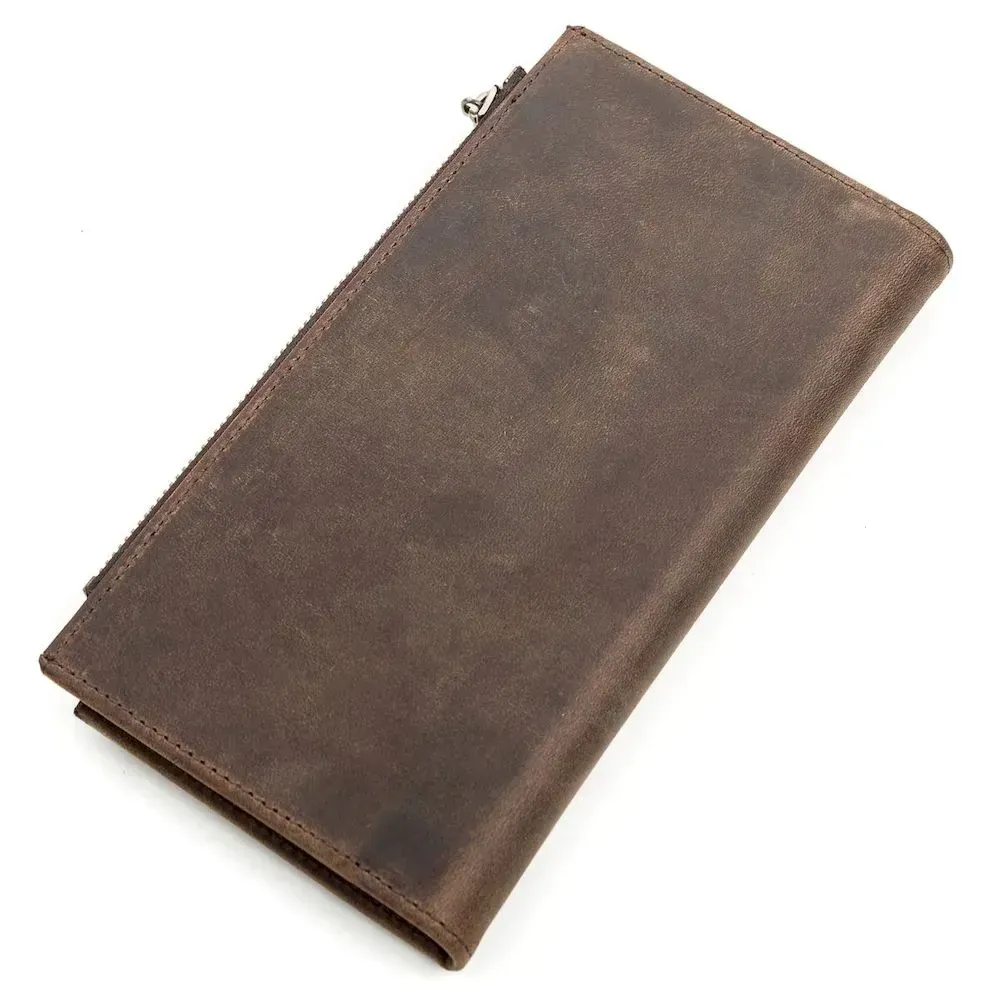 Функціональний вертикальний гаманець з вінтажної шкіри, для якої характерні потертості та неоднорідність забарвлення. Через це вироби з такої шкіри довше мають презентабельний зовнішній вигляд. В аксесуарі використана якісна та стильна фурнітура. Відмінна ідея для подарунка, яка не залишить байдужою жодного чоловіка.