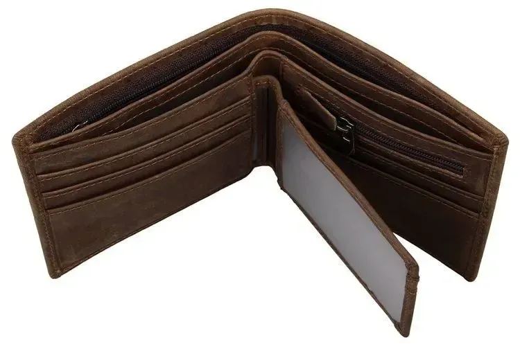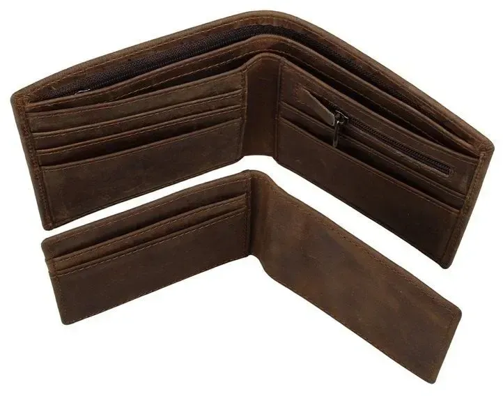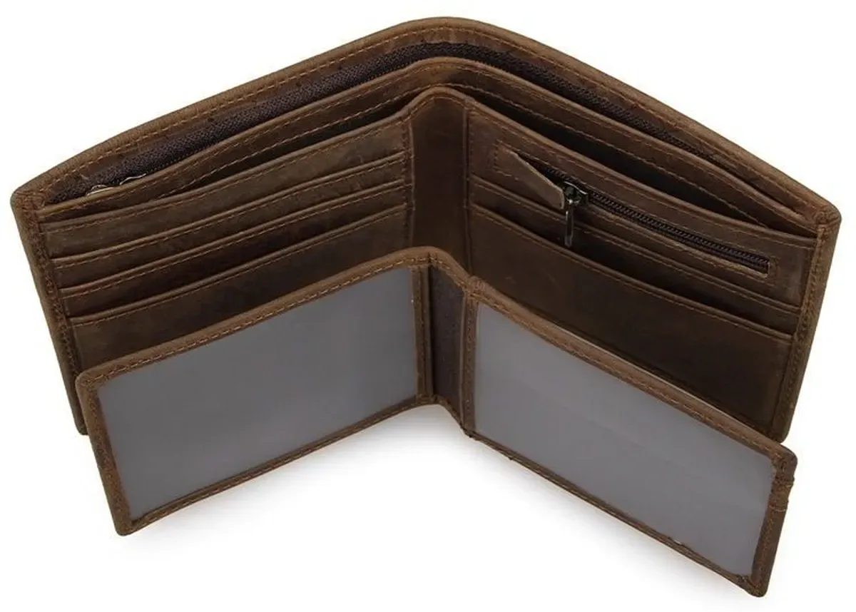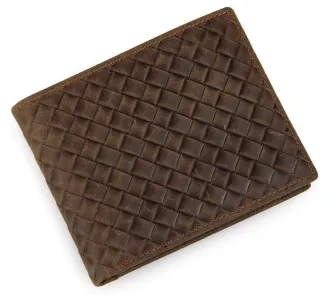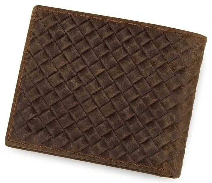 Відмінний чоловічий гаманець з натуральної високоякісної натуральної шкіри. Зовнішній бік аксесуара прикрашений тісним декоративним малюнком. Колір фурнітури: латунь. Гаманець акуратно прошитий світло-коричневою ниткою. Гаманець упакований у текстильний чохол білого кольору.