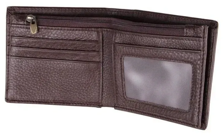 Відмінний чоловічий гаманець з натуральної шкіри коричневого кольору. Гаманець акуратно прошитий міцною коричневою ниткою. Колір фурнітури: латунь. Підкладка аксесуара виконана з міцного текстильного матеріалу коричневого кольору. Гаманець упакований у тканинний пилозахисний мішечок.