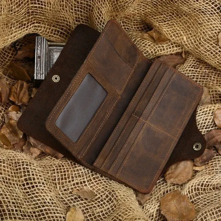 Сучасний, якісний гаманець коричневого кольори. Цей Аксесуар виконаний з натуральної вінтажної шкіри, яка прослужить довгі роки і при цьому збереже презентабельний вигляд при частому використанні. життя чоловіків. Своїм дизайном він підкреслює стиль та смак власника цього гаманця. Аксесуар закривається на кнопку, упакований в текстильний чохол білого кольору.
