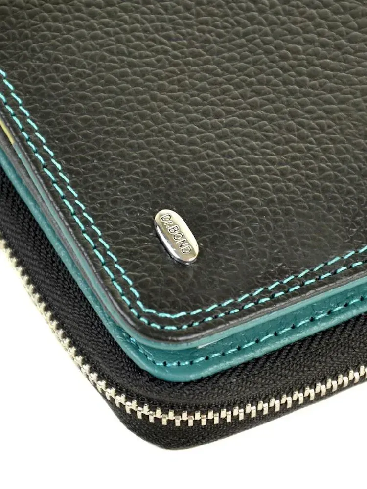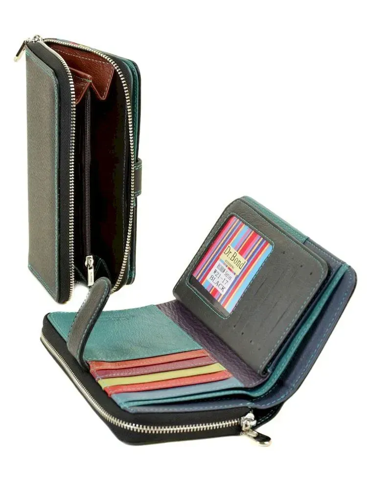 Жіночий місткий шкіряний гаманець Dr.Bond. Головне відділення закривається на кнопку. Два відкриті відділення для банкнот, 15 кишень для карток та 4 великі кишені, одна з яких виконана прозорою. Зовні гаманця є подвійне відділення на блискавці, в якому поміститься смартфон 5” та монетниця на блискавці. Розмір 16,5*9,5*3,5 см