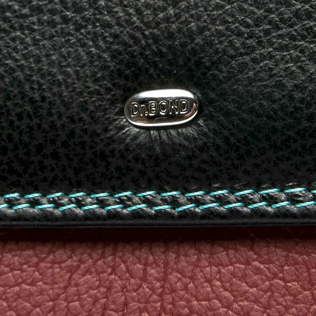 Жіночий шкіряний гаманець Dr.Bond. Складається втричі та закривається на кнопку. М'які шкіри з природною текстурою. Усередині знаходяться два відкриті відділення для банкнот, розділені шкіряною перегородкою, монетниця на блискавці, 6 кишень для візитних карток. Зовні гаманця є відкрита кишеня. Розмір (см.) 12*10,5*3