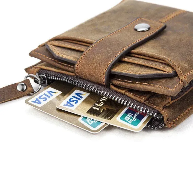Якасна гаманець з ефектом старовини, виглядає дуже стильно та аристократично. Підійде для любителів носити із собою багато карток. Аксесуар застібається на хлястик із кнопкою. Модель невеликого розміру та поміститься у невелику сумку. Носять аксесуари з такої шкіри дуже добре. Такий гаманець додасть родзинку у ваш образ і стане чудовим доповненням до вашого стилю. Аксесуар упакований у тканинний чохол, що захищає його від попадання пилу та різних забруднень. Може бути чудовим подарунком для близької людини.
