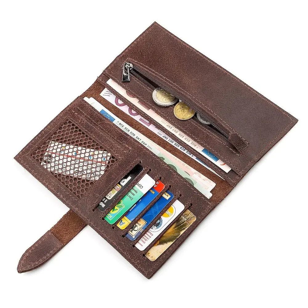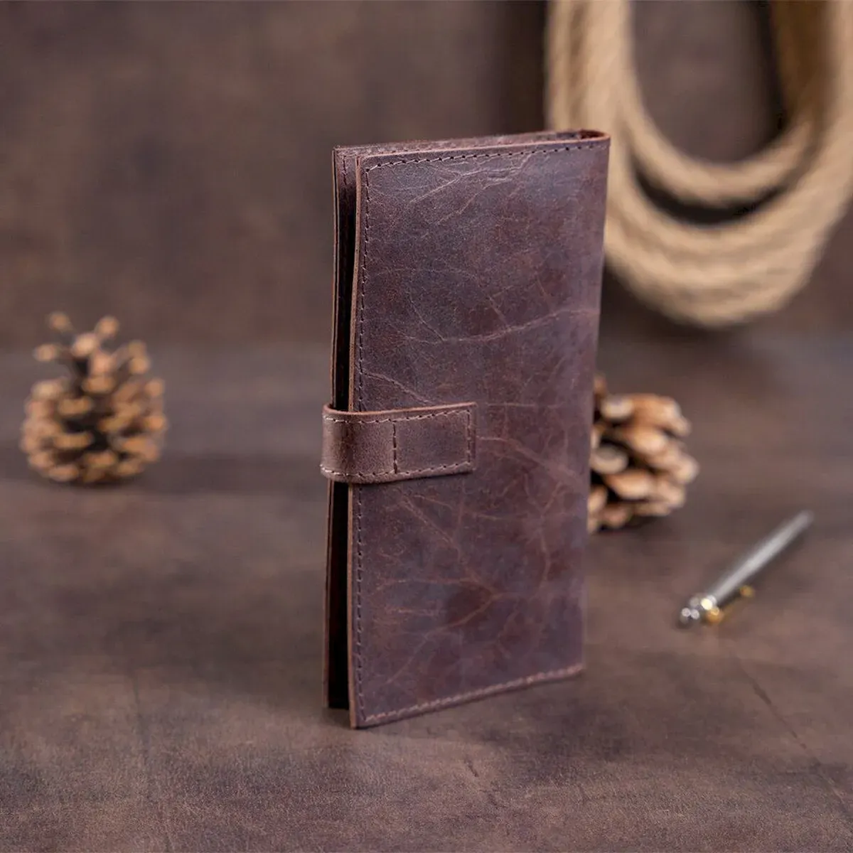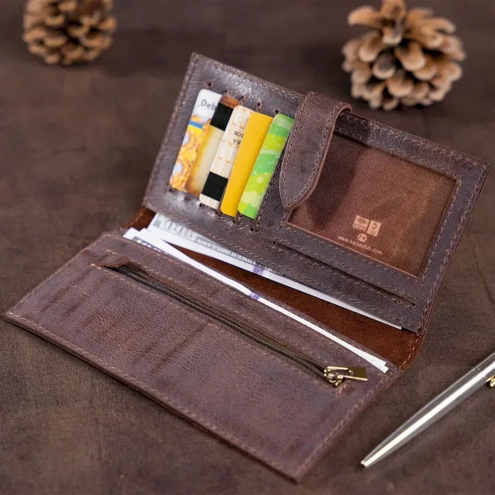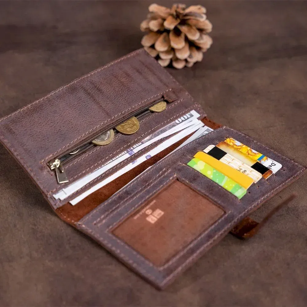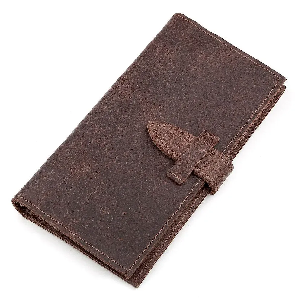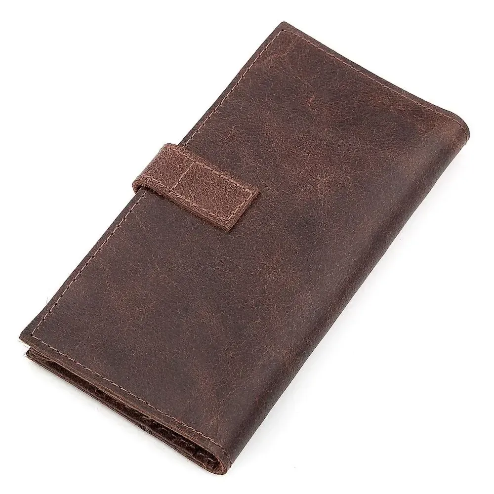 Гаманець із натуральної шкіри. Застібається на ремінець із петелькою. Модель має текстурне покриття. Досить оригінально виглядає. Багатий вигляд. Зверху прошита коричневою ниткою. Має суворий витриманий дизайн у класичному стилі. Аксесуар чудово підкреслить ваш статус. Чи не займає багато місця. Тонкий і водночас місткий. Буде чудовим подарунком. Гаманець має високу зносостійкість до потертостей та тріщин. У нашому магазині величезний асортимент товарів на будь-який смак і колір, а ціни та якість вас приємно здивують. Однозначно вразить її власника.