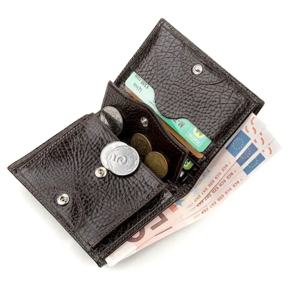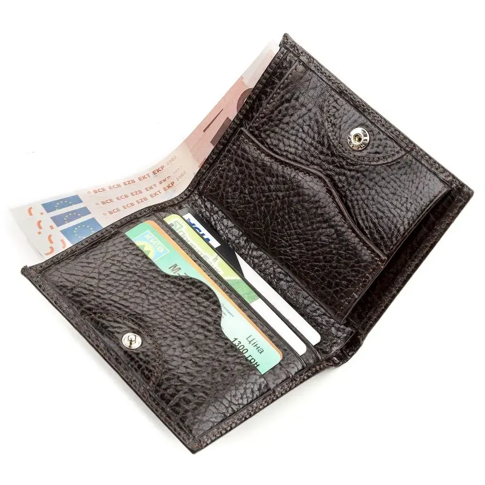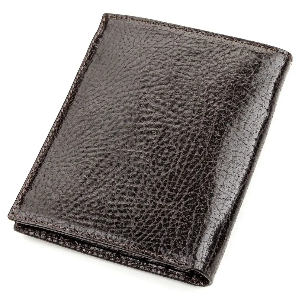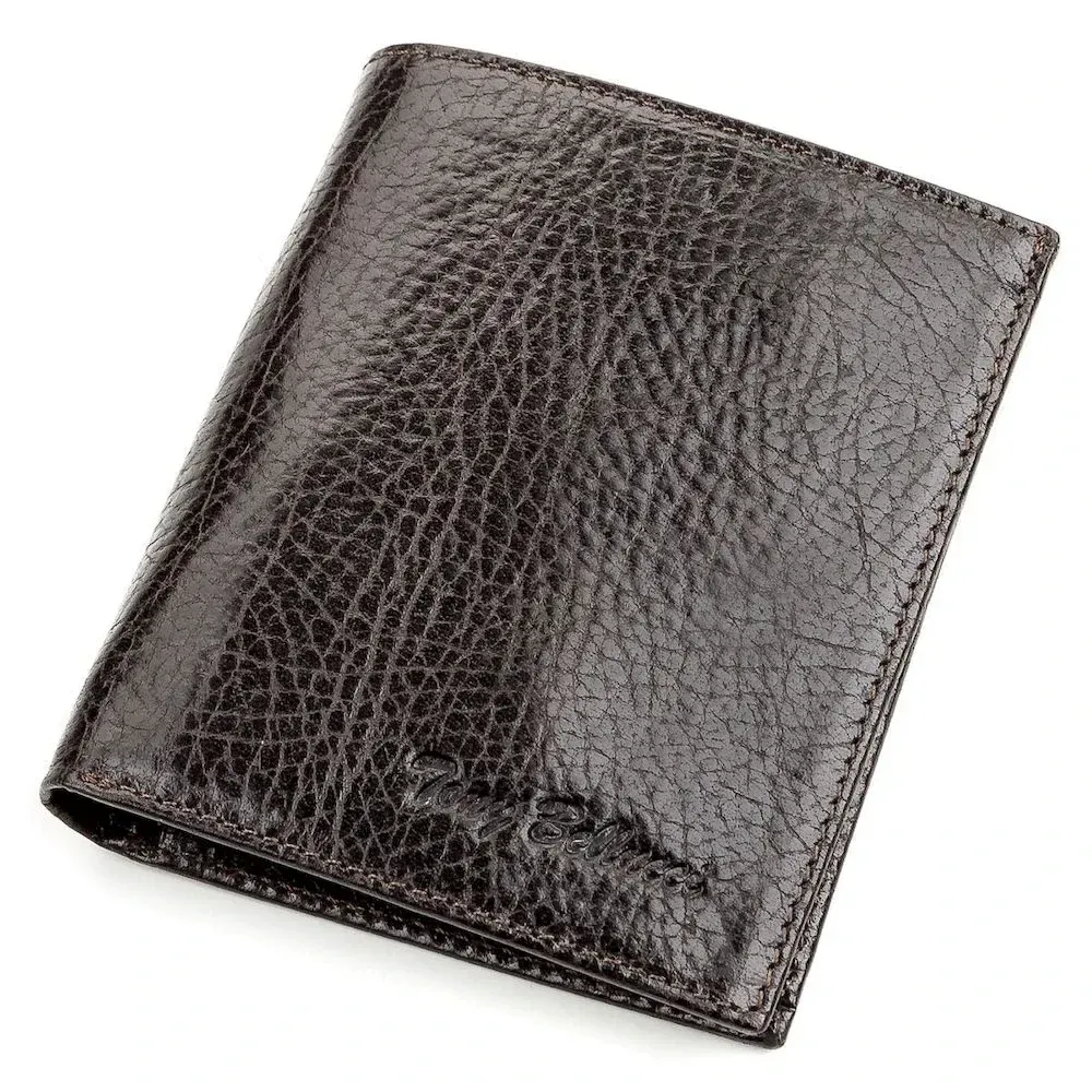 Вертикальний коричневий гаманець, з натуральної фактурної шкіри, більше відомої як “флотар”. Стильний дизайн та компактність забезпечує йому популярність серед покупців.