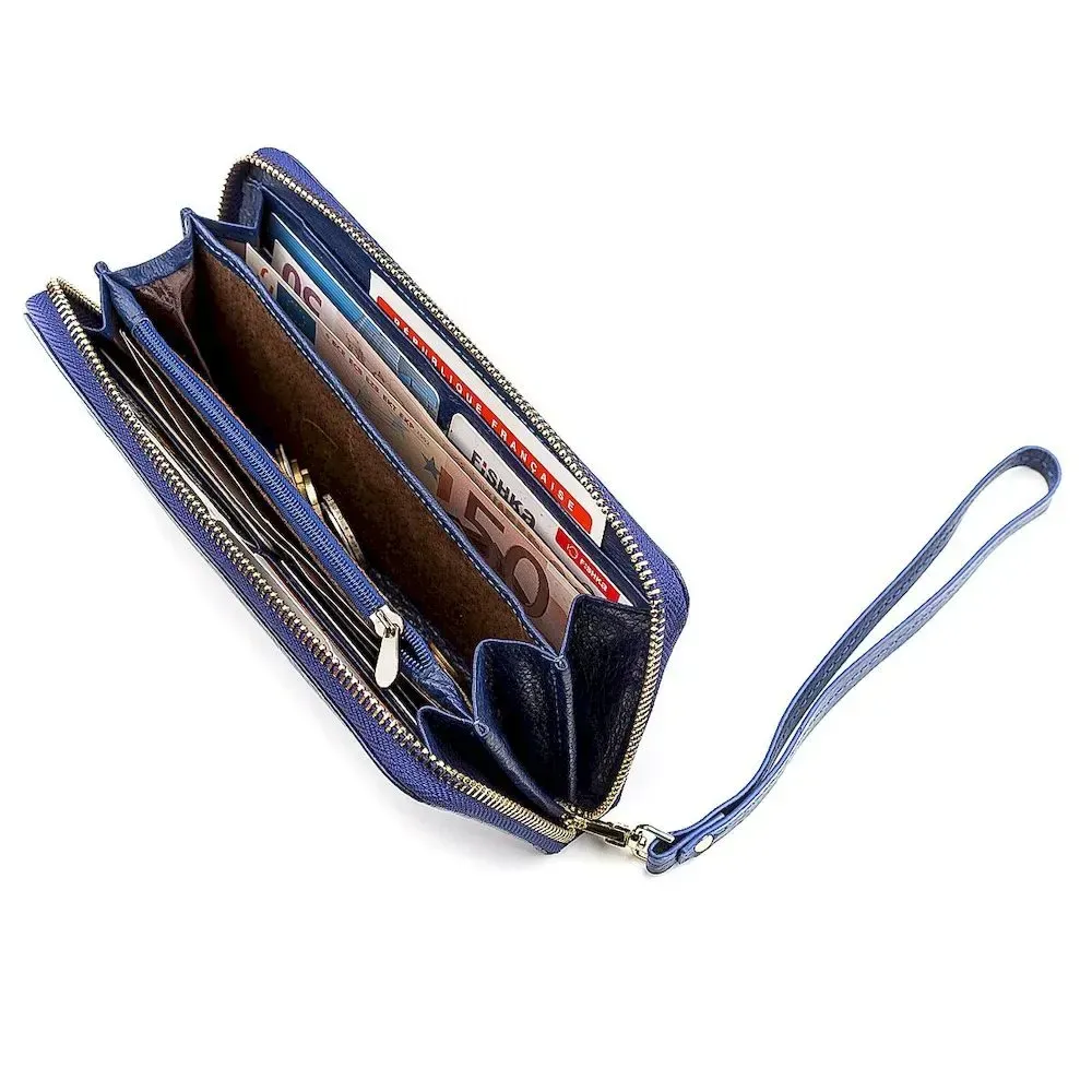 Представлена модель гаманця дуже універсальна і містка, тому може використовуватися як клатч, тим більше, що в комплекті йде ремінець для руки. Аксесуар дозволяє комфортно розміщувати паперові банкноти та платіжні картки, а у відділення на блискавці міститься багато дрібниць та інших невеликих речей. Модель виготовляється з якісної, зносостійкої шкіри, приємної для рук та зручної при носінні. На лицьовій стороні нанесений фірмовий логотип та стильний подвійний рядок. Доповнює всі переваги та міцна, надійна фурнітура, оформлена в золотому відтінку, а також фірмова коробка, що дозволяє своїм привабливим виглядом використовувати гаманець як чудовий подарунок.