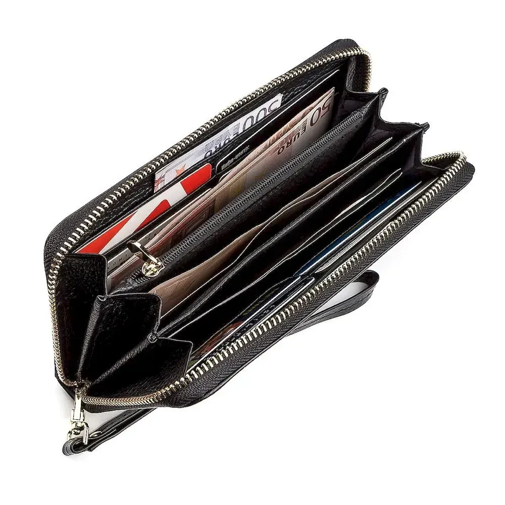 Цей гаманець оформлений у солідний чорний колір і виробляється з натуральної, зносостійкої шкіри, приємної на дотик і комфортної носіння. Закривається аксесуар на змійку, а вся фурнітура надійна та якісна, із привабливим оформленням у золотому відтінку. При відкритті гаманця стають доступними всі місткі відділення, секції для платіжних карток і відділ, що закривається на блискавку, для монет і різної дрібниці. Доповнює шикарну функціональність та красивий зовнішній вигляд упаковки, виконана у фірмовому стилі популярного бренду Бостон. За бажання знайти гарний та якісний подарунок, слід звернутися до нашого інтернет-магазину, де є відмінний вибір аксесуарів на будь-який смак.