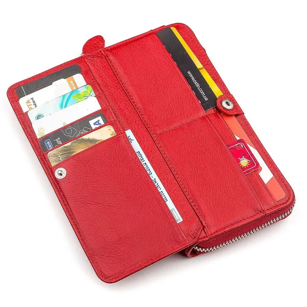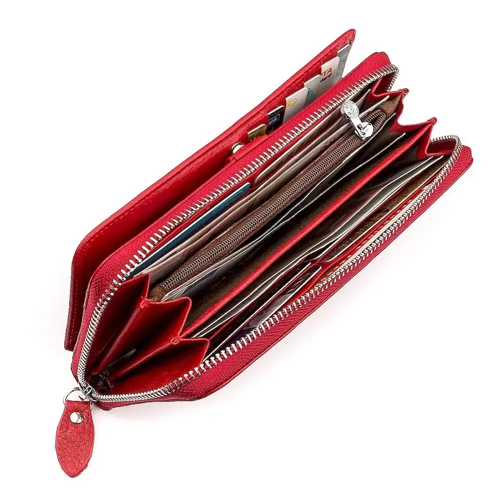 Дана модель гаманця виробляється з якісної та міцної шкіри , а всередині оброблений текстилем. Аксесуар дуже практичний і місткий, особливо сподобається людям, які мають багато платіжних карток, яких тут можна розмістити цілих 18, завдяки окремому блоку зі зручними сегментами, і фіксацією на кнопку. У нагоді і бічні кишені, а закривається гаманець на блискавку. Такий аксесуар стане чудовою прикрасою і підійде як подарунок для рідних та друзів, адже він має шикарний зовнішній вигляд і дуже якісно пошитий.