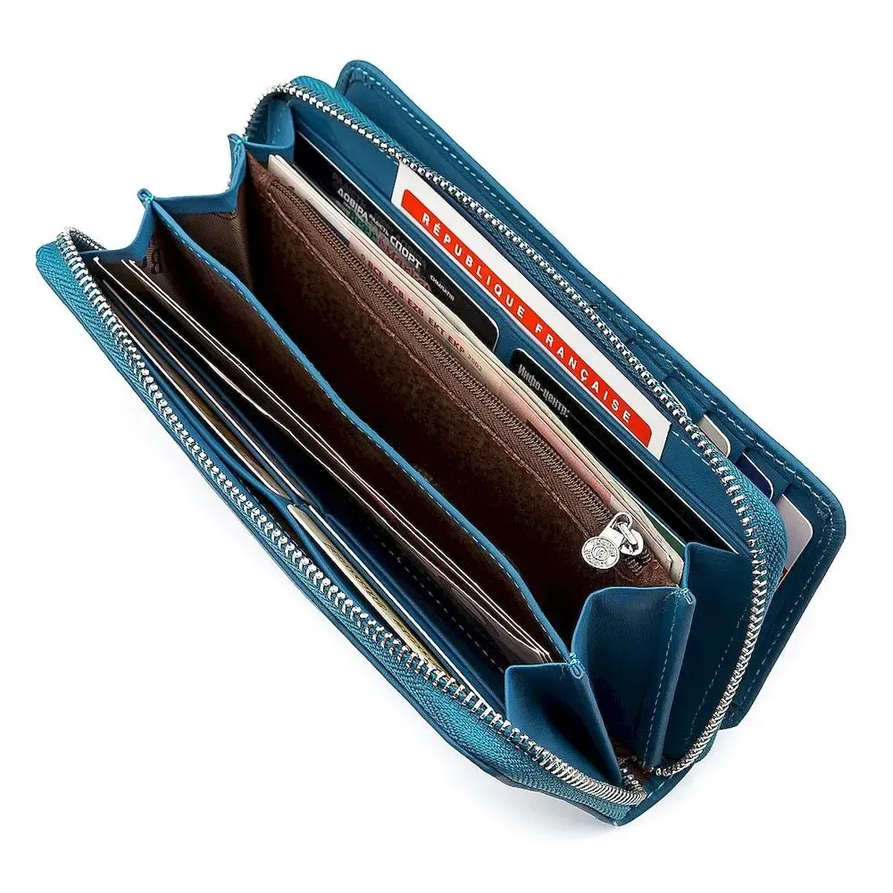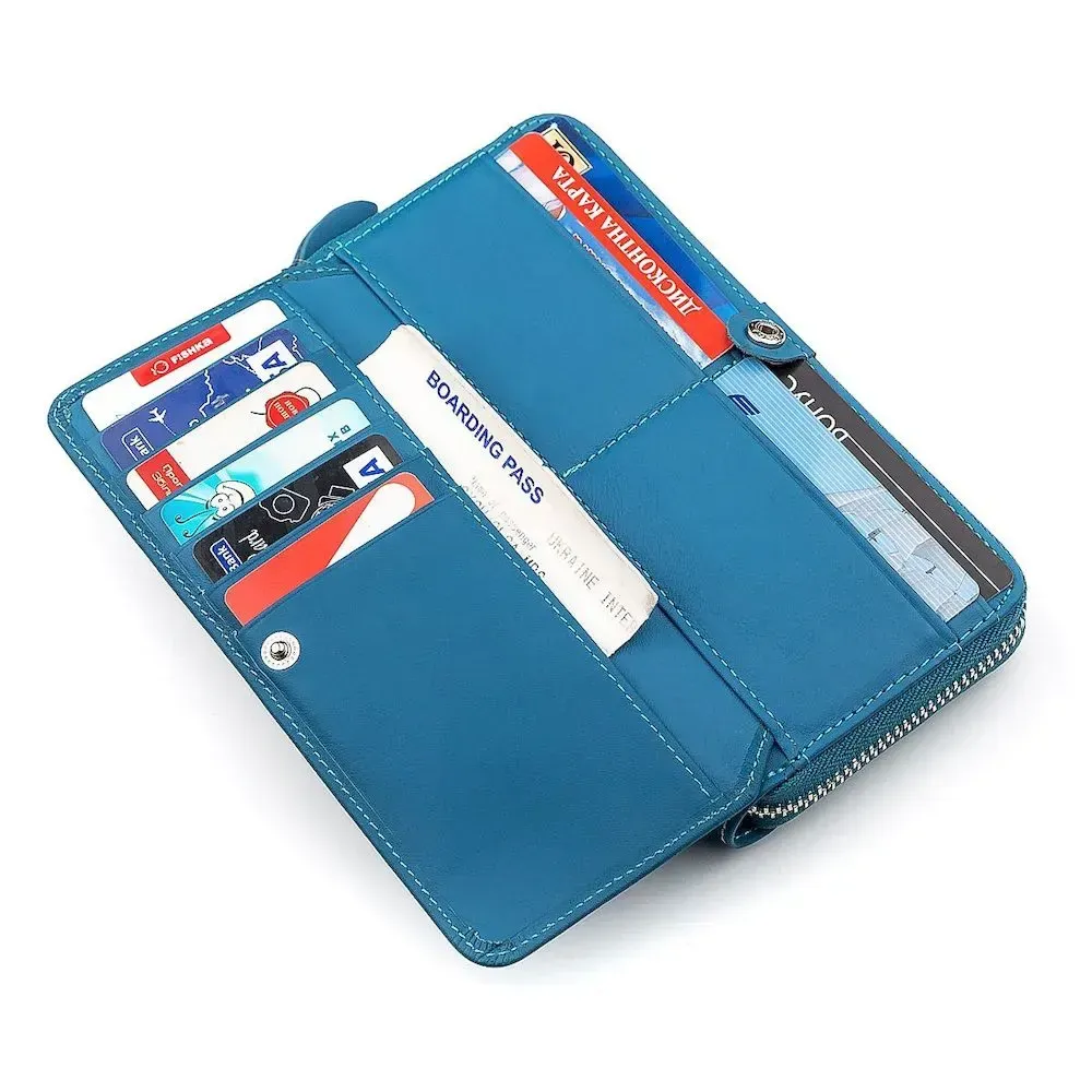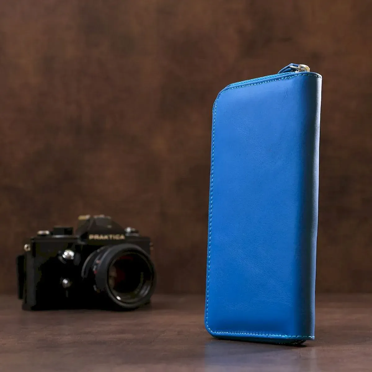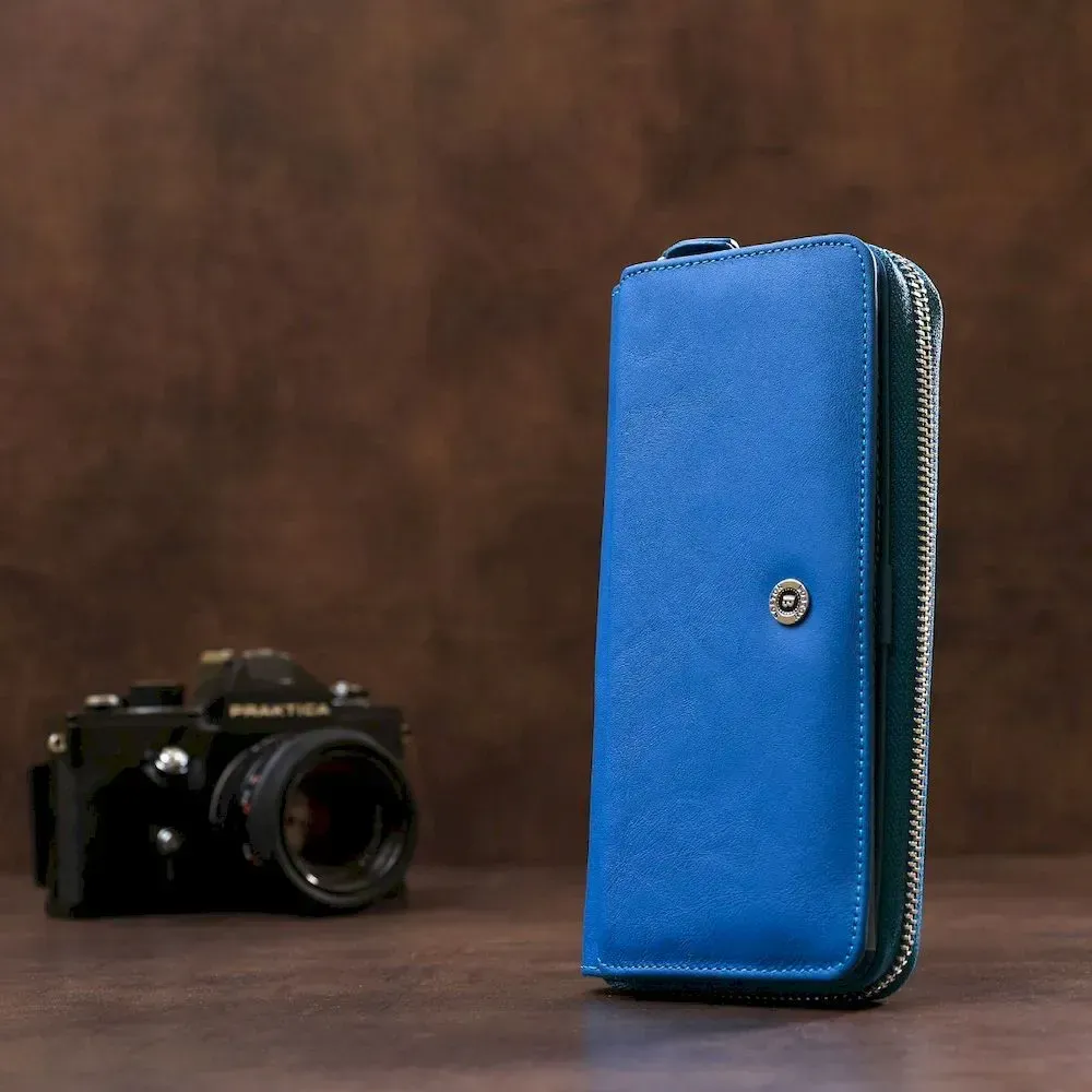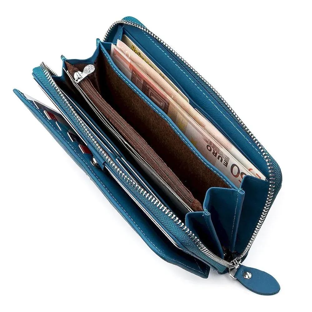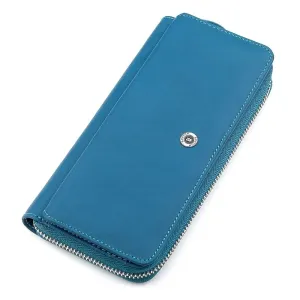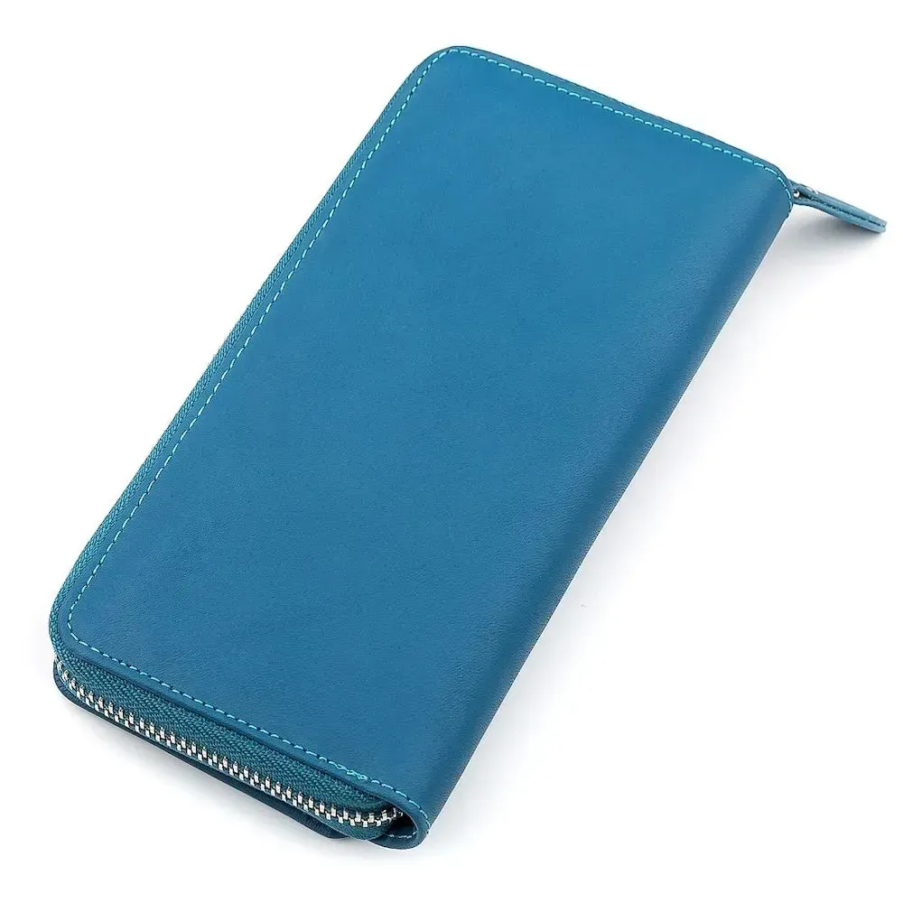 Представлена модель виконана в красивому бірюзовому відтінку, з якісної, натуральної шкіри. Закривається аксесуар на блискавку, що дозволяє на найвищому рівні забезпечити збереження вмісту, якого може бути дуже багато, адже завдяки непоганим розмірам доступна відмінна місткість. Зовні є також додатковий блок для платіжних карток, яких можна розміщувати 18 штук, разом із внутрішніми осередками. Порадує багатьох і приваблива упаковка, оформлена у фірмовому стилі з логотипом бренду.