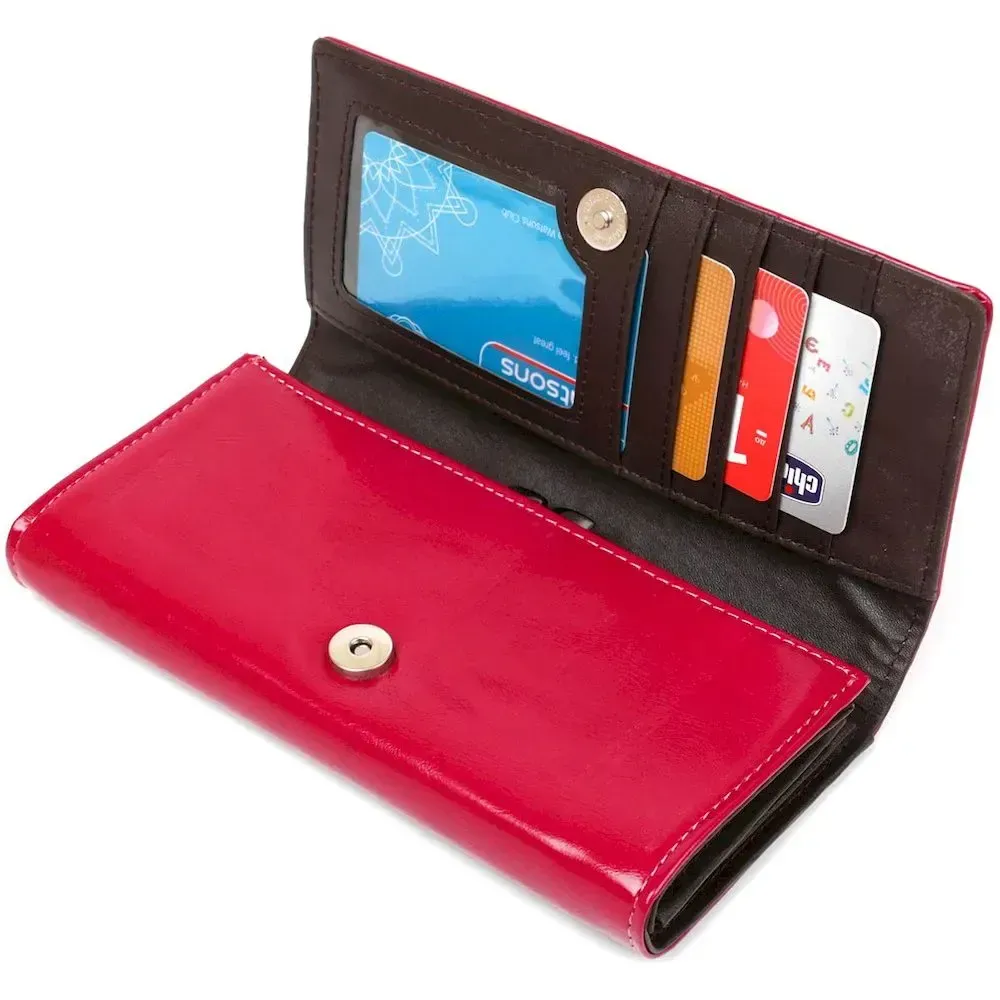 Даний малиновий гаманець з екошкіри має 3 зручні відділення для купюр, автономний блок для карток та монетницю з механічним фіксатором. Аксесуар закривається на клапан із магнітною кнопкою. З таким гаманцем вам стає зручніше збережуть у порядку купюри, картки та монети. Його дизайн та колір чудово підкреслять ваш смак. Аксесуар легко поміститься у жіночу сумочку. Гаманець стане чудовим подарунком для близького.